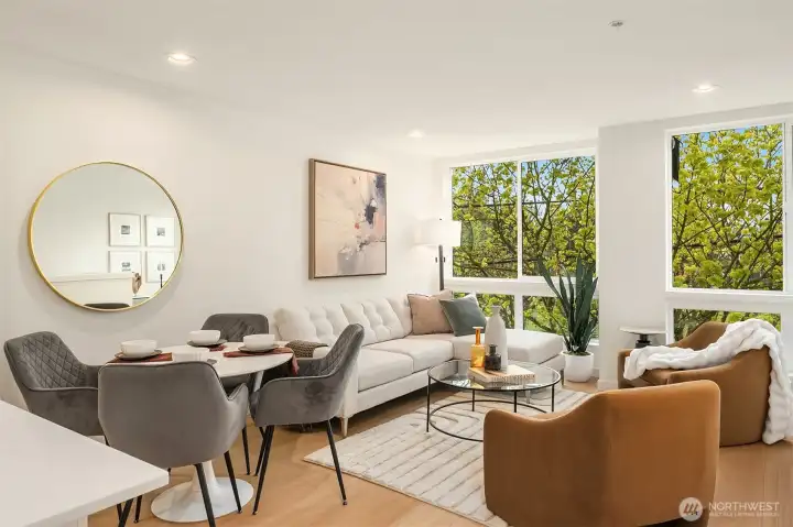 Welcome to Olive — an exceptional Ballard townhome set directly across from Gilman Park, offering the rare urban luxury of a green, open view right outside your front door. Four thoughtfully designed floors offer 3 bedrooms, a private den/office, and a fourth-floor sky lounge made for entertaining — opening to a rooftop deck with sweeping park and neighborhood views. A dedicated home office means work and life each have their proper place. The main level delivers a chef's kitchen with a generous island, Pro-Series appliances, custom cabinetry, and wide-plank flooring throughout. The third-floor primary suite is a serene retreat with a spa-inspired en-suite bath. One of just 24 curated homes by award-winning Shelter Homes, steps from the Ballard Farmers Market, restaurants, and boutiques. Urban living at its finest.