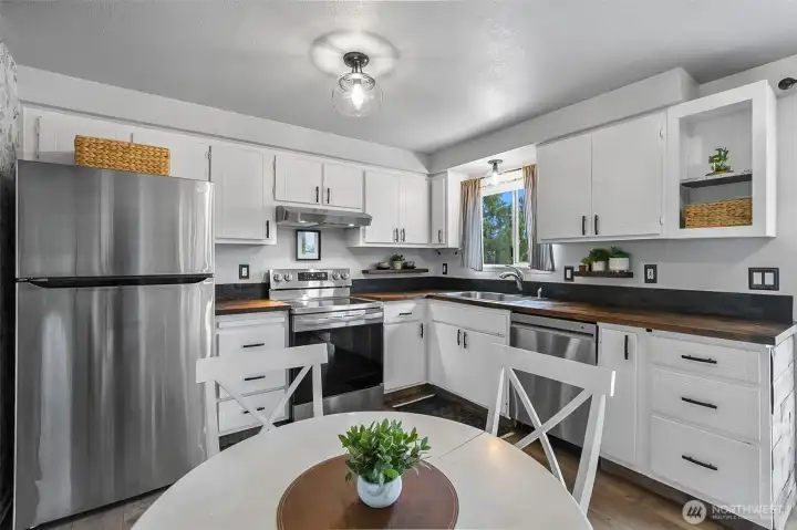 Beautifully updated rambler on a shy quarter acre lot in a great location with sound, mountain and city views plus RV/boat parking. Enjoy and get cozied into this beautifully updated rambler which includes a generous living space with built-in wood stove. Bright Kitchen w/breakfast nook & slider to rear patio/yard, full hall bath, large den and primary suite with private bath. Features include fresh paint, new appliances and LVP throughout. This double-sized lot provides all the space you need to entertain on your large patio and is pre-wired for a hot tub. Play, relax and enjoy fresh veggies from your ready-to-go raised planter boxes and don’t miss the fire pit, ideal for clear summer nights with friends. Close to I-5, local schools, and just minutes to the YMCA. Neighboring amenities and recreation abound with trails, Cedarcrest Golf Course, and nearby parks, including Hickok Park, which is a very short one-minute walk away. Plus a 1 year Home Warranty - Welcome Home!