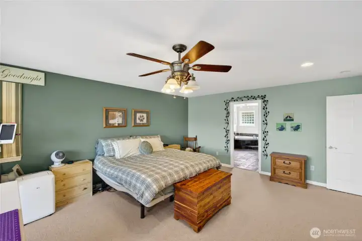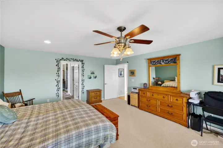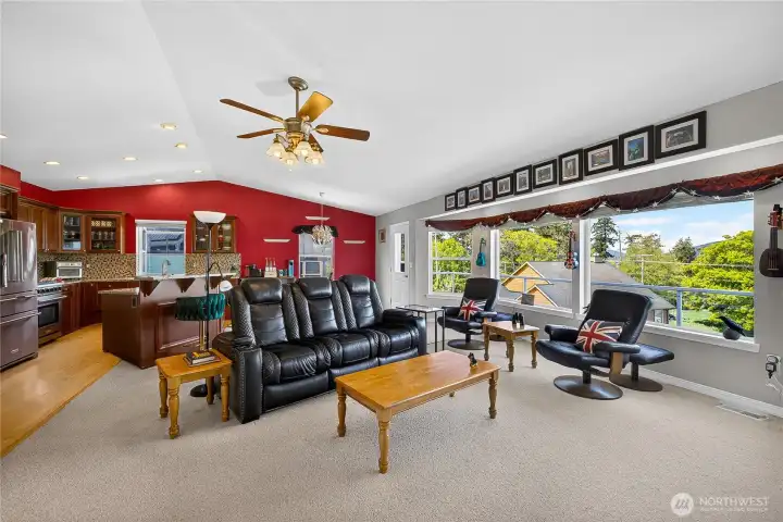 Enjoy elevated living with sweeping water views and a stunning backdrop of Mount Baker from your private deck. This beautifully maintained home offers an ideal blend of comfort, function, and lifestyle. The spacious primary suite features deck access, natural light, and room to unwind, while additional bedrooms provide flexibility for guests, hobbies, or a home office. The thoughtfully designed interior includes generous storage throughout, highlighted by a custom walk-in closet system and oversized storage room to keep everything organized. The kitchen and living areas flow seamlessly, creating a warm and inviting space for everyday living and entertaining. Step outside to a low-maintenance yard designed for relaxation, complete with a dedicated dog run and a peaceful sitting area to take in the views. Solar panels add efficiency and long-term savings. Located in a desirable neighborhood near the water, this home offers the lifestyle you’ve been waiting for—views, space, and comfort all in one.