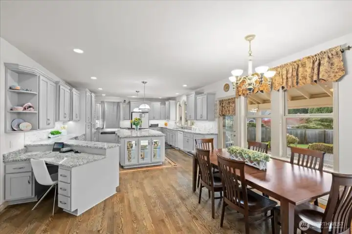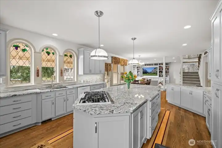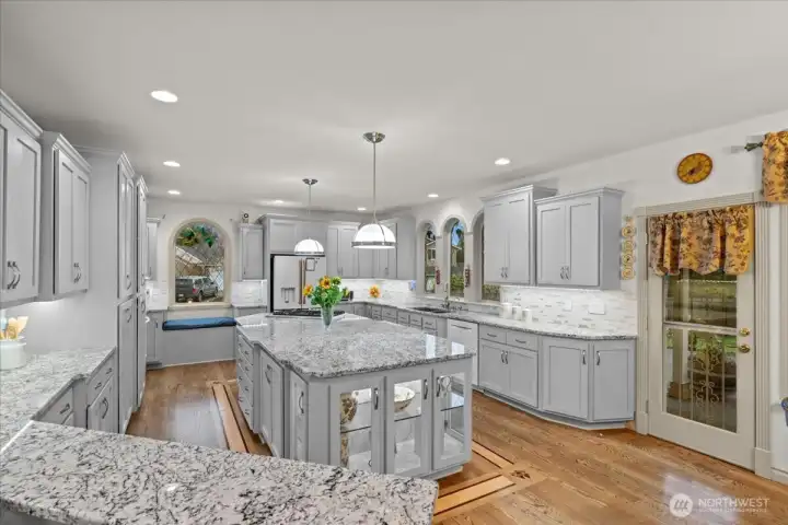The center island in this beautifully remodeled kitchen measures 11'x5'.