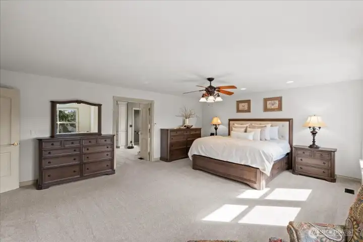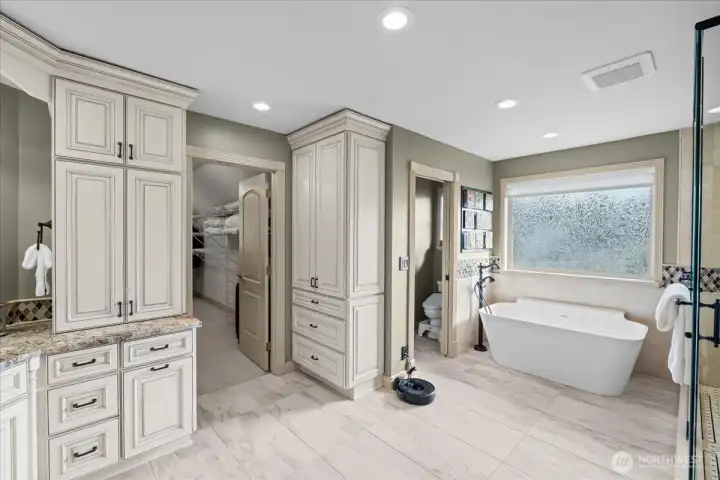 Heated tile floor, note the additional closet as you enter the oversized walk-in closet.