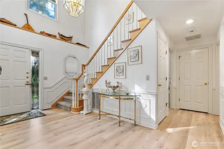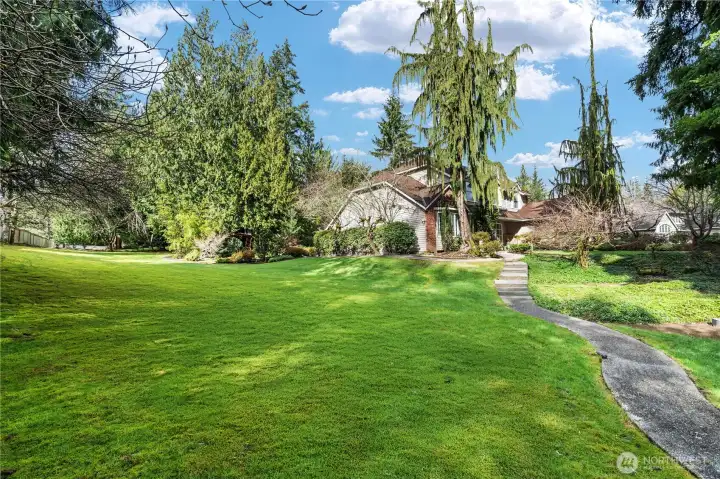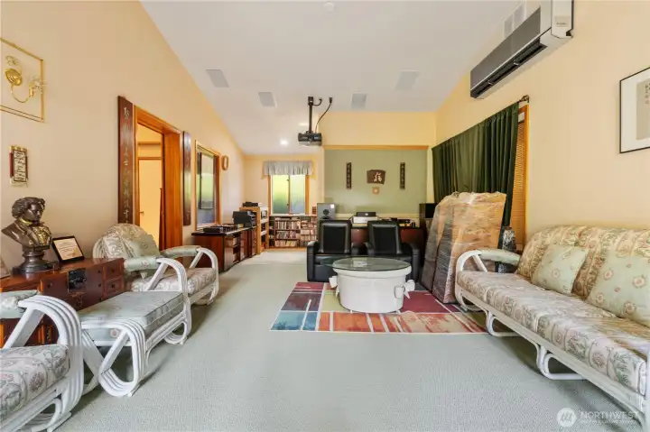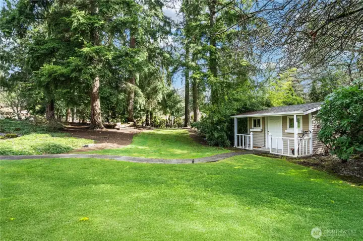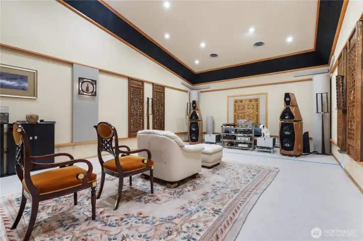 This home boasts an array of distinctive amenities. Among them are a charming treehouse nestled among the foliage, twin ponds featuring cascading waterfalls, a meticulously crafted music room tailored by acoustic engineers and audiophiles, detached storage spaces complete with built-in racks, a gas-powered generator that automatically activates during power outages, whisper-quiet Split AC units for the home theater and music room, a delightful sunroom, an inviting outdoor tea house and a stunning garden, showcasing a variety of blossoms throughout the year, a miniature walking trail encircling the house, complemented by a newer composite roof (replaced in 2020). Master is on main floor. Brand new carpet and waterproof laminate flooring.