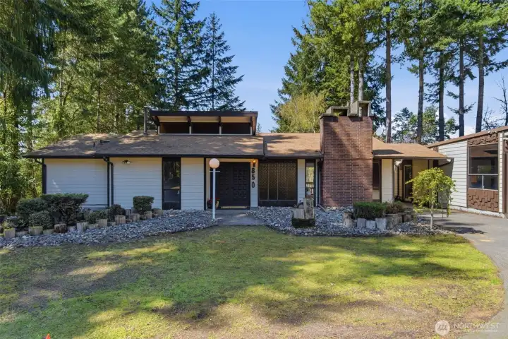 Welcome to your secluded sanctuary at 850 NE Rimrock Dr, Bremerton. Nestled on a quiet dead-end street within the Wind Ridge community, this quality-built rambler with a daylight basement offers the perfect blend of architectural interest and modern updates. Step inside to experience the grandeur of vaulted wood ceilings that soar above a spacious living area. The home’s centerpiece is a magnificent floor-to-ceiling Columbia River Basalt fireplace, providing a stunning focal point and a warm, inviting atmosphere for those crisp Northwest evenings. The interior shines with new flooring and a fresh coat of new paint, creating a bright, move-in-ready canvas. The lower level features a fully finished daylight basement, offering flexible space for a family room, home office, or guest quarters with its own slider to the patio. For the hobbyist or craftsman, the oversized garage includes dedicated contractor shop space with lighting, work benches, and shelving; providing ample room for projects and storage. This nearly half-acre property offers a rare combination of privacy, quality construction, and modern style—your private retreat awaits! See it today!