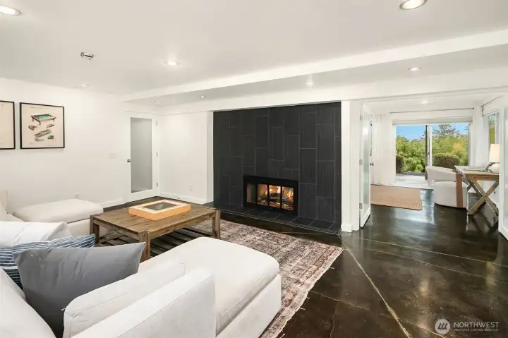 Lower level media room, extra living area.