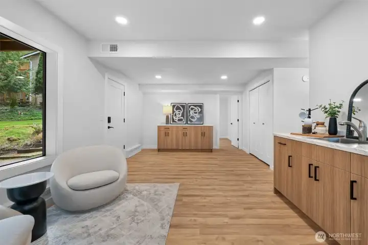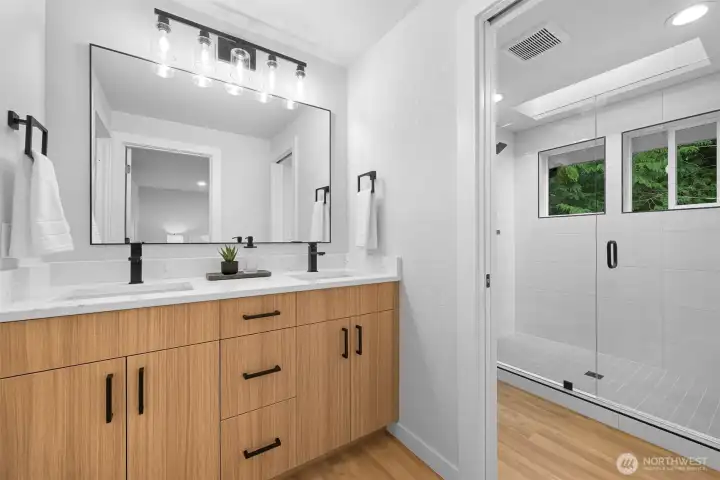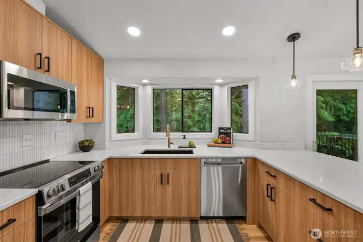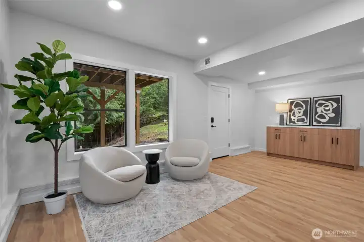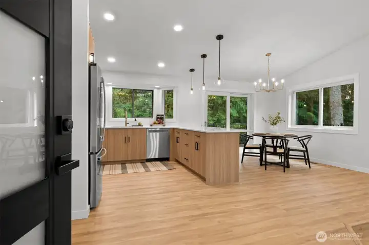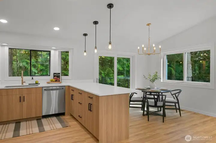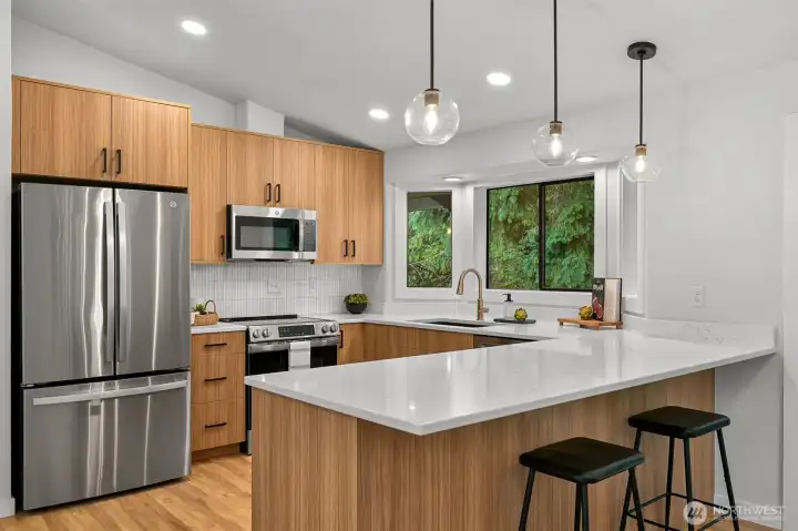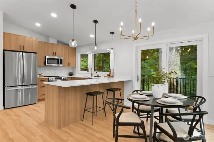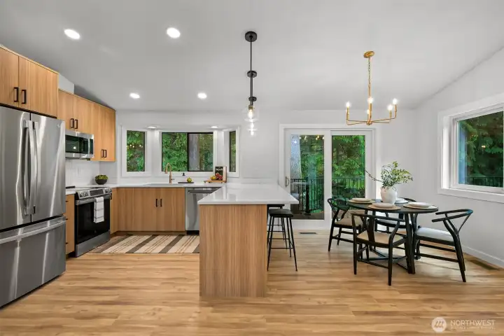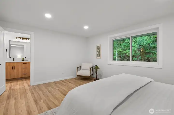 Tucked at the end of a quiet cul-de-sac in Bellingham’s highly sought-after Geneva neighborhood, this fully renovated home offers a rare blend of privacy, luxury, and access to the outdoors. Backing to a serene greenbelt, the setting feels peaceful and secluded, with frequent visits from local wildlife, including deer and even neighborhood eagles. Ideally located just minutes from Lake Whatcom and Galbraith Mountain, you’ll have easy access to some of the area’s best mountain biking, hiking, and outdoor recreation. Inside, the home has been completely reimagined with luxury finishes throughout, offering 3 bedrooms, 3 bathrooms, and over 1,900 square feet of beautifully updated living space. The layout is both functional and inviting, with a seamless flow between the living, dining, and kitchen areas. Step outside to a massive deck, perfect for entertaining or simply taking in the surrounding natural beauty. Downstairs offers excellent flexibility with potential for a mother-in-law suite, featuring its own separate entrance and dedicated washer and dryer setup. It’s rare to find a home in Bellingham that offers this level of privacy, a full high-end renovation, and still keeps you just minutes from shopping, downtown, and the freeway entrance!