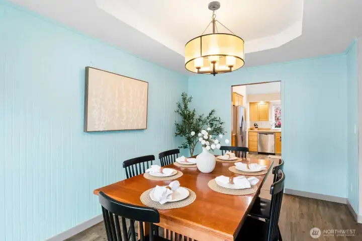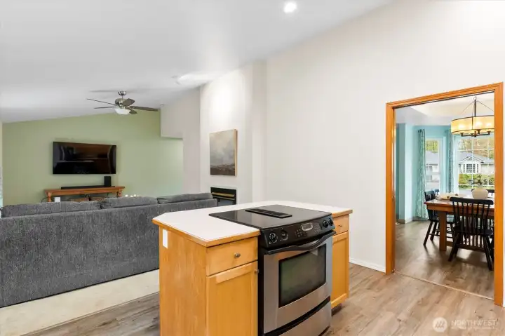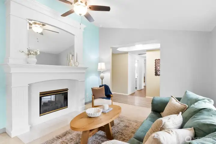 3 bed, 2 bath rambler in a quiet Sedro-Woolley setting featuring two separate living areas and a formal dining space, offering flexibility for everyday living and entertaining. A double-sided fireplace connects the living spaces, adding warmth and character. The kitchen provides ample cabinetry. Primary suite includes an updated bathroom with vanity and walk-in closet. Roof and solar installed in 2024, with furnace and water heater updated in 2020. Fully fenced yard features a Japanese maple and space for outdoor use, with convenient access to local amenities and commuter routes.