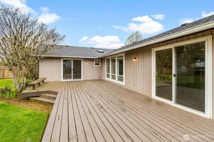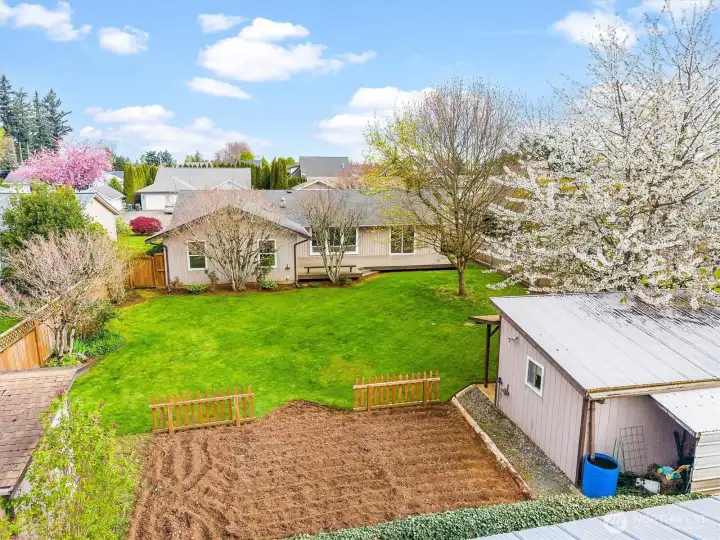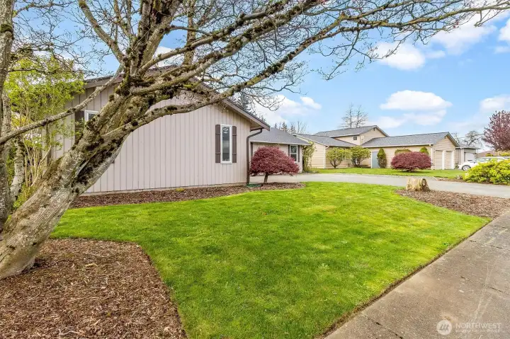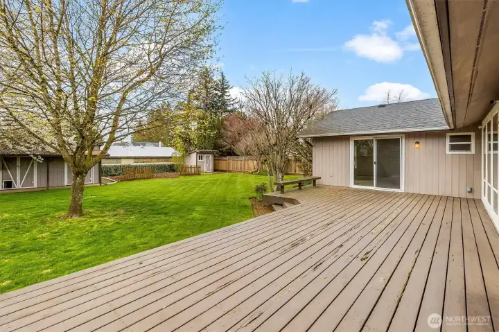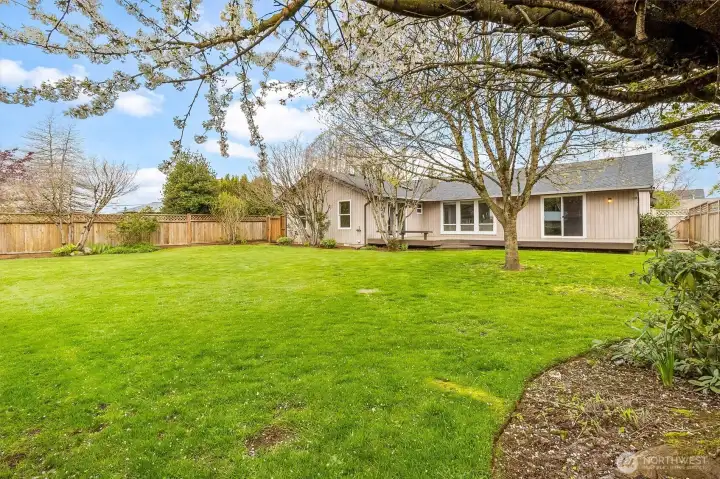 Charming single-level 4-bedroom home in the heart of beautiful Lynden! This well-maintained 1,831 SF residence offers an inviting layout with vaulted ceilings and skylights that fill the home with natural light. The spacious primary suite features private deck access, a walk-in closet, and an en-suite bath with abundant cabinetry. Recent updates include a new roof (2022), A/C (2021), and water heater (2023), providing added comfort and peace of mind. Step outside to enjoy the expansive backyard complete with a large deck, fenced yard, dedicated gardening space, and two outbuildings—perfect for storage or hobbies. Ideally located near schools, parks, and downtown Lynden, this home combines comfort, convenience, and charm.