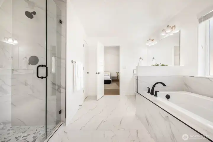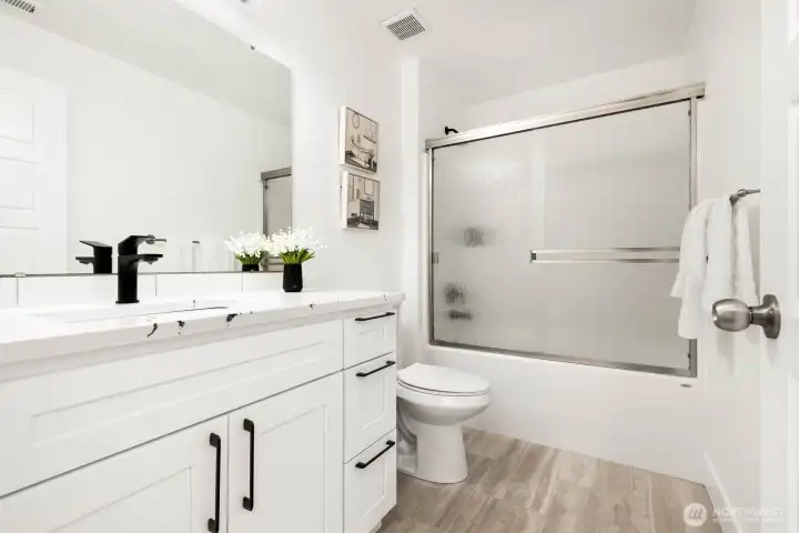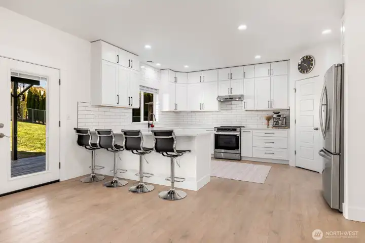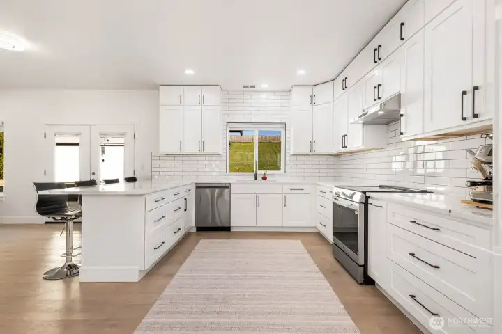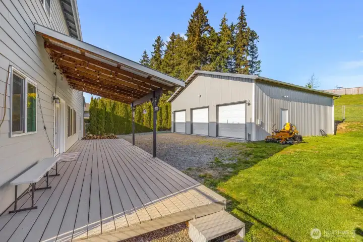 Beautifully updated custom home on 0.75 acres in desirable Frederickson! Offering just under 3,500 sq ft, this spacious property blends comfort, design and potential for future business. Recently remodeled with new LVP flooring, fresh interior paint, and timeless kitchen cabinets with quartz countertops. The home includes two primary suites-one on the main floor and one upstairs-each with private bathrooms, ideal for multi-generational living or guests. Enjoy a 3-car garage plus a separate garage/workshop with excellent potential for ADU conversion, with power, septic and water already available. Step outside to a large entertainment deck, covered hot tub with gazebo, sprinkler system and mature landscaping. RV parking with full hookups adds extra convenience. No HOA gives you freedom to use the property as you wish !