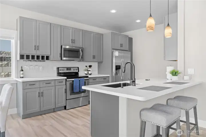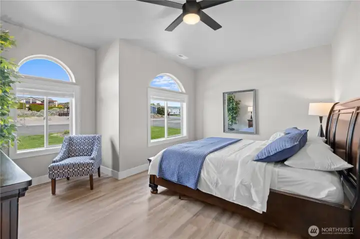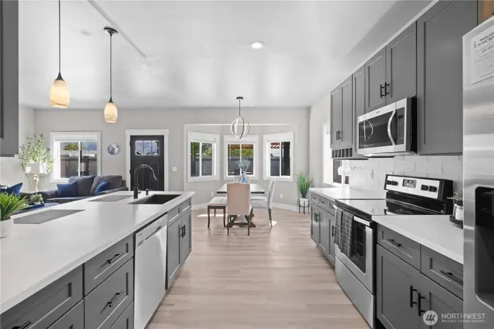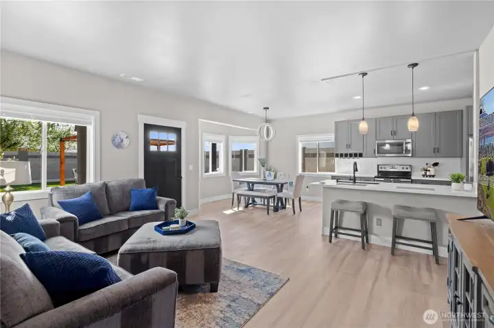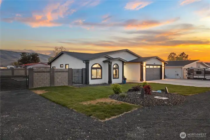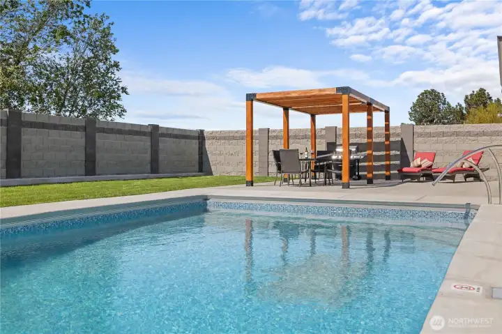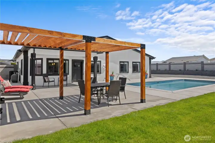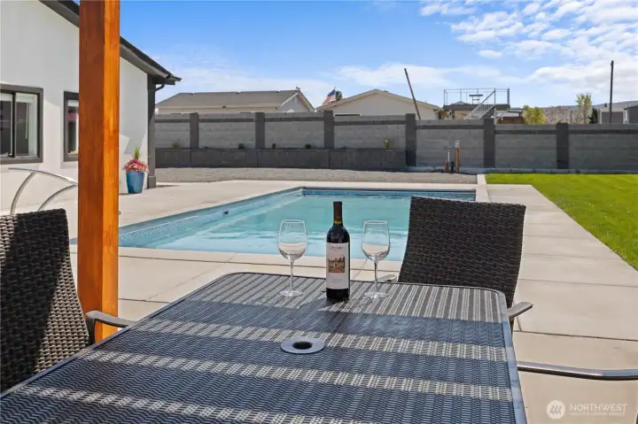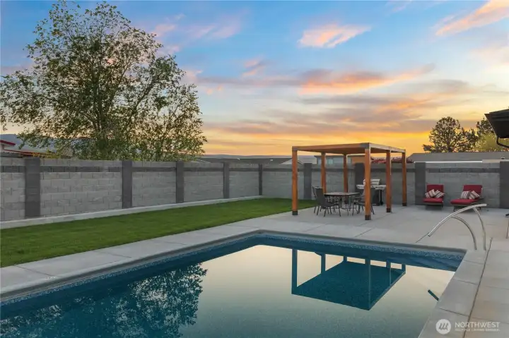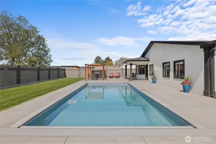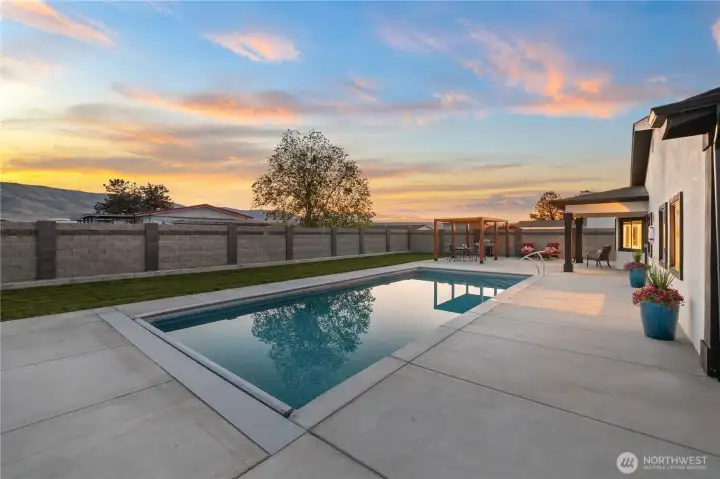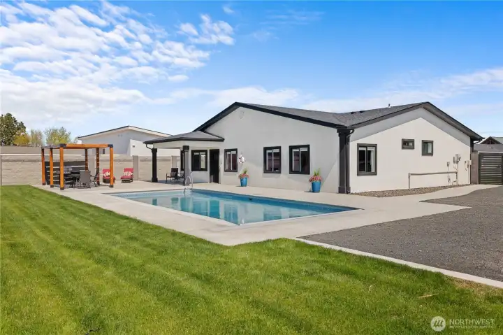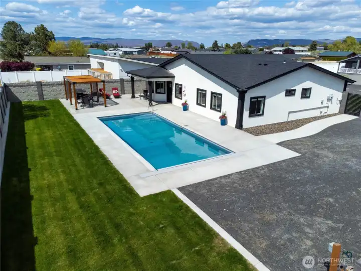 Welcome to this beautifully designed totally updated stucco home in the heart of Desert Aire, where modern comfort meets resort-style living. Set on an oversized, level lot, this 3 bed, 2 bath home offers 1,528 sq ft of thoughtfully designed space with durable tile and vinyl plank flooring throughout. Vaulted ceilings and an open-concept layout create a seamless flow from the living and dining areas into a spacious kitchen with abundant cabinetry, stainless steel appliances, and generous prep space perfect for entertaining. The primary suite is a true retreat with a walk-in closet and ensuite bath featuring a huge walk-in shower. Enjoy effortless outdoor living with a fully fenced yard, low-maintenance landscaping, and a Pergola overlooking your private saltwater pool with exceptional privacy. A covered sitting area adds the perfect setting for relaxing evenings, all framed by stunning territorial & mountain views. Additional features include wood-wrapped windows, brand new washer/dryer, dedicated laundry room with extra storage, attached 2-car garage, and secured RV parking with dump & hookups. Sold turn-key & move-in ready! Desert Aire offers 300+ days of sunshine, Columbia River access, scenic trails, and a relaxed resort lifestyle just right outside your door. Unmatched amenities including an 18-hole golf course, airfield, community pool, park, tennis courts, gym, trails, and boat launch—making this an exceptional full-time residence, vacation home, or investment.