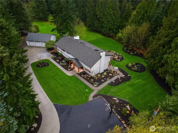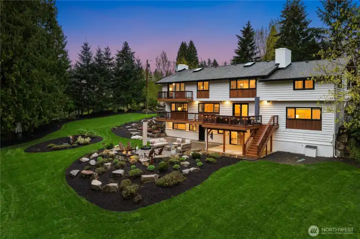 Set on 3.45 private acres in the heart of Hollywood Hill, this extensively remodeled estate offers a rare blend of seclusion, scale & lifestyle. Positioned along the crest of “Heart Attack Hill,” a well-known local landmark, the property captures unmatched privacy while just minutes from Woodinville’s wine district. Expansive living spaces are designed for gathering, with a formal living room, oversized dining room w/sunset exposure, open kitchen + family room, and 5 fireplaces throughout. The lower level is built for entertaining w/a wet bar, pool table, theater room, and temp-controlled ~400 bottle wine cellar, plus an oversized flex room w/full bath and separate entry- ideal for guests, multi-generational or ADU potential. Upstairs features 5 generously sized bedrooms, a large loft/bonus space, and 3 more full baths, including a primary suite w/private balcony, fireplace, and spa-like bath. Outdoor living shines w/professionally designed landscaping, covered patio, and multiple gathering areas. Oversized 1,010 sq ft 3-car garage w/EV charger, plus two garden sheds. Minutes to DT Woodinville, wineries, dining, and within the highly sought-after Hollywood Hill Elementary, Timbercrest Middle, and Woodinville High service areas. Convenient access to major tech hubs- approx. 6 miles to Meta, 8 miles to Microsoft, 11 miles to DT Bellevue, 18 miles to UW/Seattle, and 3 miles to DT Woodinville. One-of-a-kind privacy & lifestyle in one of Woodinville’s most desirable locations.