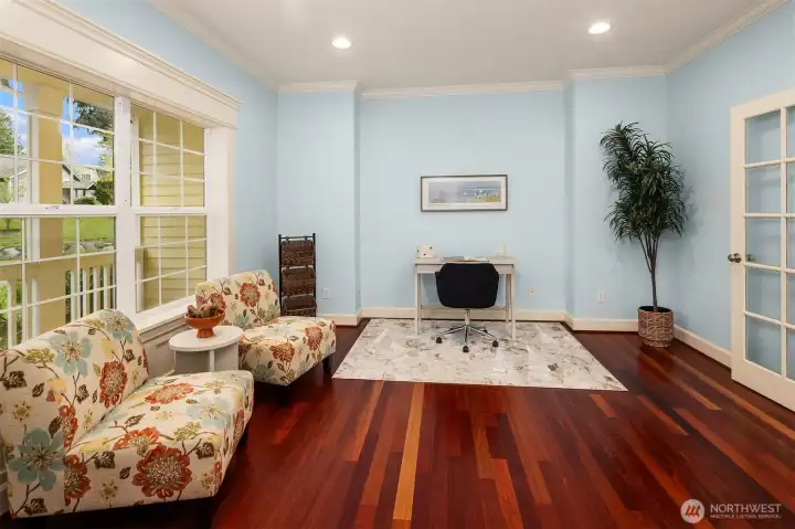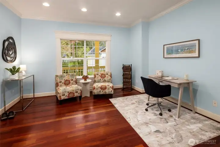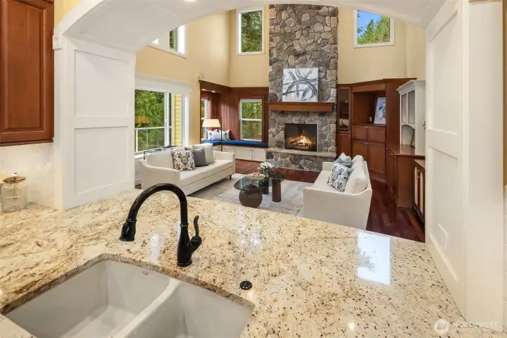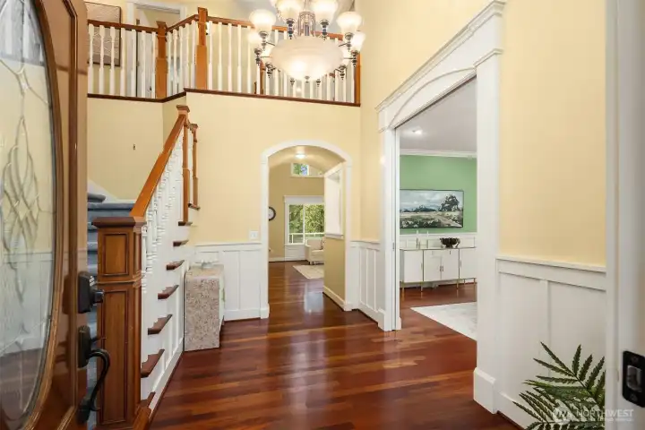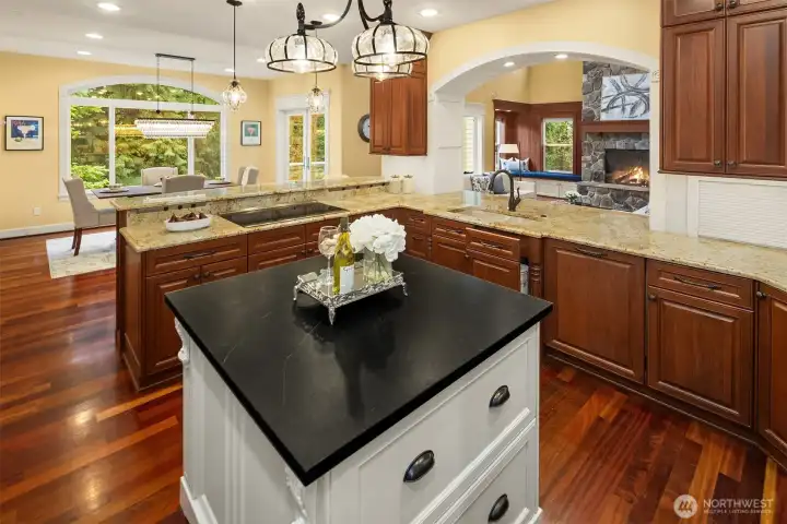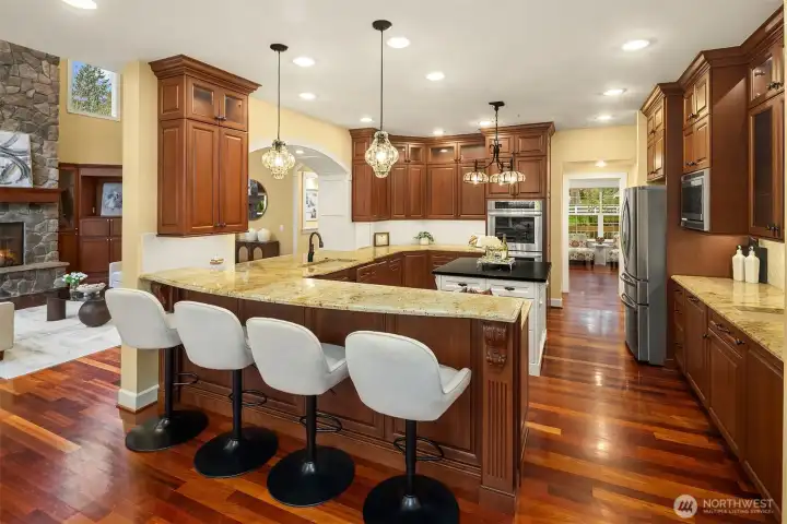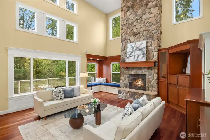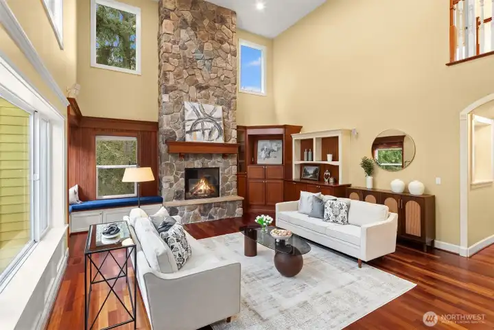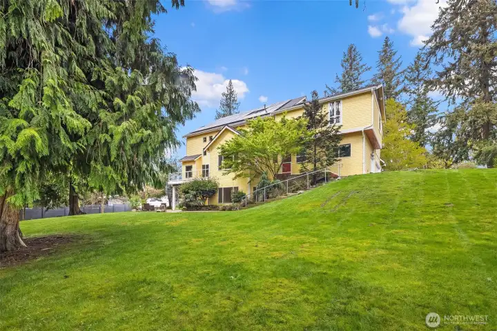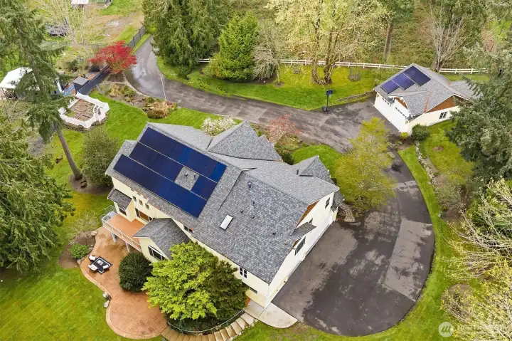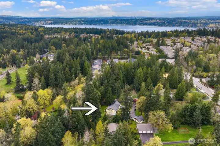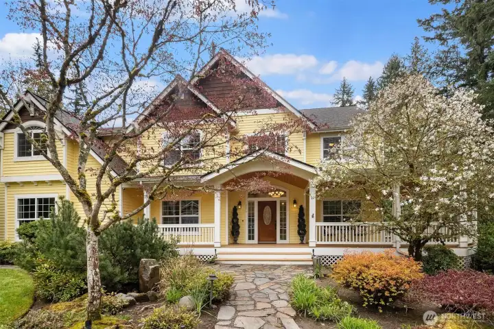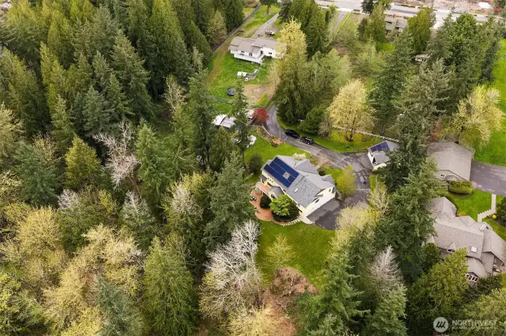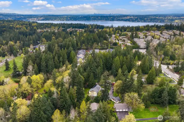 Welcome to this great country style home just a few steps from the Sammamish town center with shopping and services. The library is close by. Enter the 1.7 acres on your own private paved driveway where the main homesite is tucked back away from SE 4th on a flag shaped Lot. Walk to parks, library, shopping, metro bus service and Sammamish City Center. The home has a large 3 car attached garage with a 220v outlet plus a detached 2 Door RV garage, with a 30 amp RV plug for your toys. The site is above those to the south, so it is private. Fenced garden space plus lots of area for flowers around the property. Solar Panels are in place. On the interior, There is extensive Cherry Hardwood Flooring, Fabulous kitchen with an eating bar, three gas fireplaces, Den/office, Vaulted Ceilings and custom ceiling details, Primary Bath with Jetted Tub and double shower, dual staircases, Slab Countertops, Cherry Cabinetry, Jack and Jill Bathroom, basement with room for a second kitchen theatre with video equipment, hideaway all in a finished basement that can be upgraded to meet your needs. This home has many flex rooms to accommodate your needs for projects or your customized use. There is a covered deck on the front of the home.