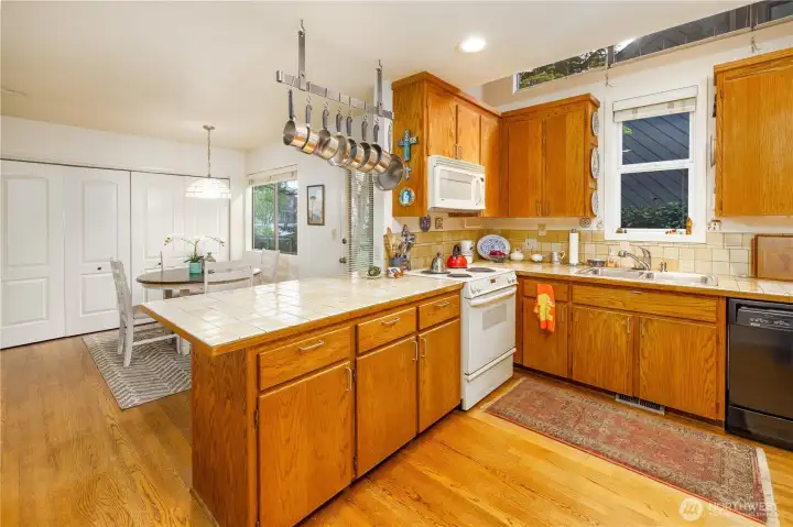 The spacious kitchen offers abundant storage and workspace, providing a fantastic opportunity to customize and make it your own. It opens seamlessly to a generous breakfast nook with direct access to the side yard and garage, creating an easy, functional flow for everyday living and entertaining.