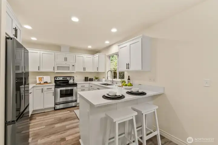ONE YEAR OLD ROOF + OVER $40,000 in JUST COMPLETED UPGRADES! Fall in love with this beautifully updated 5 bedroom home in the coveted Baker Vista neighborhood of Lake Stevens, perfectly located just one street from both Highland Elementary and Lake Stevens High School, 5 minutes from charming downtown Lake Stevens' lakeside parks and the boat launch, as well as near all commuting routes - offering all of the best close by. Enjoy a fresh, modern interior featuring NEW INTERIOR PAINT on walls, ceilings, trim, and doors, along with FRESHLY PAINTED CABINETRY in the kitchen & baths. NEW CARPET adds comfort, while NEW QUARTZ COUNTERTOPS, LIGHTING, DOOR HARDWARE, FAUCETS and BATH MIRRORS create a stylish, cohesive feel. The kitchen shines with newer stainless steel appliances, a breakfast bar, and convenient built-in desk. The inviting family room centers around a cozy gas fireplace that's perfect for relaxing evenings. Retreat to your very own haven in the oversized primary suite, complete with a spacious en-suite bathroom with soaking tub, walk-in shower and double vanity complimented by a dreamy walk-in closet. Thoughtful updates extend beyond the surface, including a CLEANED+REINSULATED CRAWLSPACE, RESURFACED PATIO, NEWLY STAINED COVERED FRONT PORCH, and a pre-inspection for added peace of mind. Move in ready, spacious, flooded in natural light, and ideally located - this is the one you’ve been waiting for.
