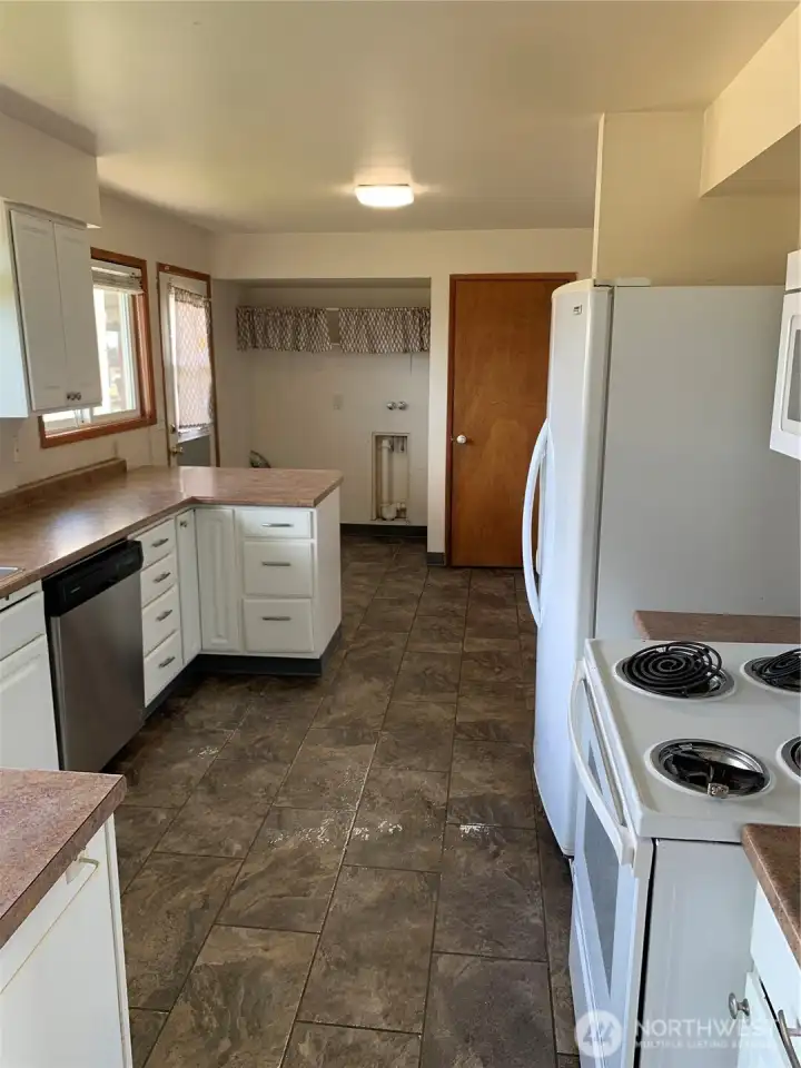 3 Bd 1.75 bath home just under 1400 sq ft. Attached carport with storage room and patio off kitchen.