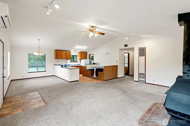 Perfectly positioned on 2 private acres down a secluded driveway, this 1,440 sq ft single-story home offers an ideal blend of space, privacy, and opportunity. Surrounded by a peaceful wooded setting, but also open, usable land perfect for gardening or outdoor entertaining. Inside, you’ll find a functional and inviting layout with open kitchen and living areas, vaulted ceilings, and abundant natural light. The home offers two bedrooms and a full bathroom, providing easy one level living. Stay comfortable all year round with a ductless mini-split heat pump, complemented by a cozy wood burning fireplace that adds warmth and character. Outside, an attached carport, attached and detached garages, and RV parking. Good for hobbies, storage, recreational vehicles, or future projects. With room to grow and plenty of potential, this home presents a fantastic opportunity for customization, expansion, or investment, all while enjoying the privacy of a tucked-away setting. Conveniently located near amenities while still offering a private, rural feel. ***MULTIPLE OFFERS HIGHEST & BEST DUE SAT 4/18 AT 1PM***