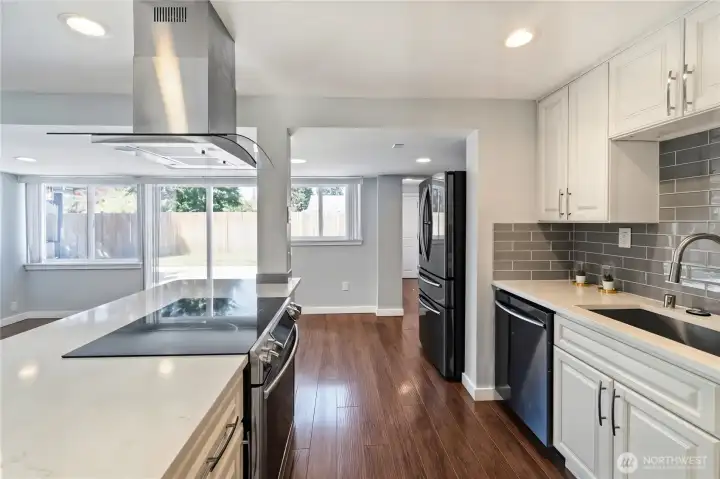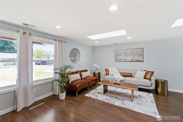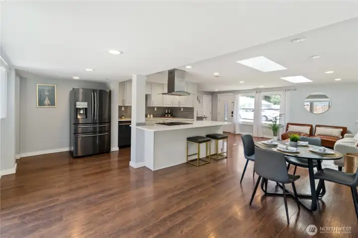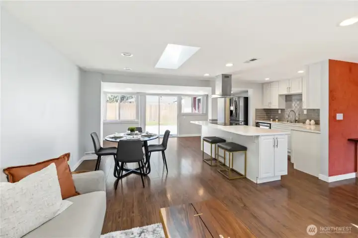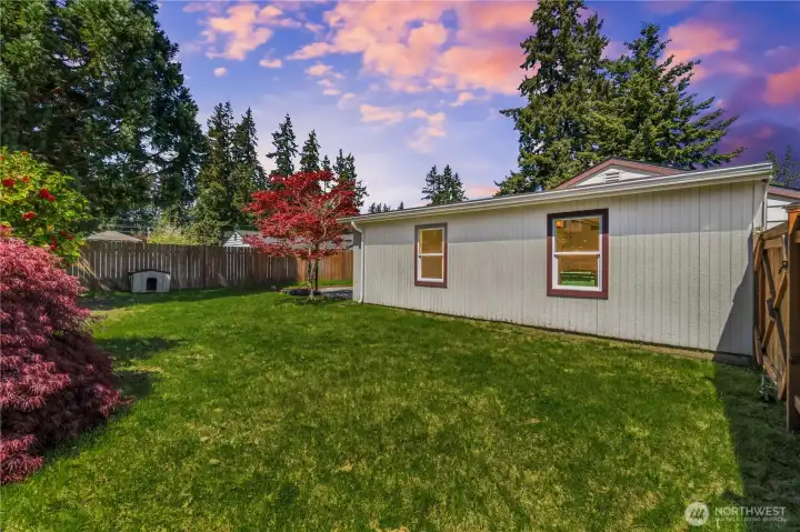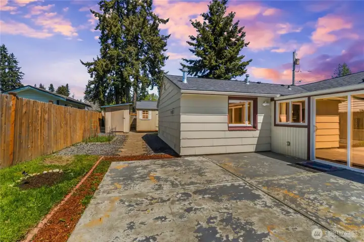 Fully remodeled and move in ready, this standout home blends thoughtful design with modern upgrades throughout. A unique, flowing layout welcomes you from the spacious living room with modern renovations, into an open concept kitchen featuring brand new cabinetry, quartz countertops, stainless steel appliances, and generous counter space. The dining area is lined with oversized windows, flooding the home with natural light, while the hallway leads to three bedrooms plus a versatile office space. Step outside to your own private retreat to an inviting patio, perfect for relaxing or entertaining. The fully fenced yard offers exceptional usable space with a dog run, play area, basketball hoop, garden area, and two large storage sheds. Extensive updates provide peace of mind, including new plumbing, electrical, flooring, windows, and a permitted additional bathroom, along with a new roof and water heater (2021). The generous lot offers exciting potential for an ADU or DADU. Ideally located in a quiet neighborhood just minutes to light rail, transit, shopping, and the new Mountlake Terrace Town Center, with a brand new elementary school nearby. A rare combination of charm, quality, and future opportunity this home truly has it all. Come see it today!