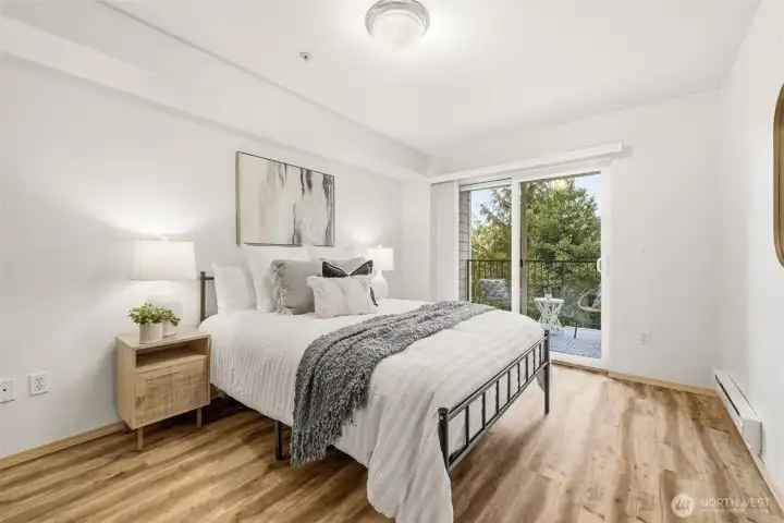 Pristine condo in the heart of Greenwood offers a private oasis with great western sunlight while nestled amongst evergreens. Just two blocks from the new Trader Joe's and walking distance to everything Greenwood and Phinney Ridge have to offer, this one-bedroom home is a must see. Tucked off the main street in a park-like setting, dine al fresco on the expansive covered deck while listening to the birds, or enjoy cozy evenings around the fireplace. Entertain with a dining area large enough to accommodate a full-size dining table, or enjoy one of the many neighborhood restaurants and cafes this special neighborhood has to offer. Complete with a washer and dryer, secure garage parking with bicycle storage, a well-run HOA, great public transportation and nearby cycling routes, this beautiful condo offers the very best of Greenwood-Phinney living!