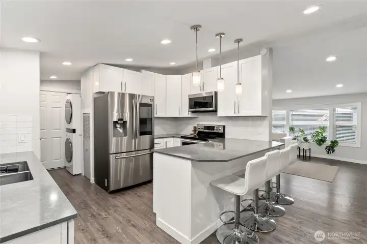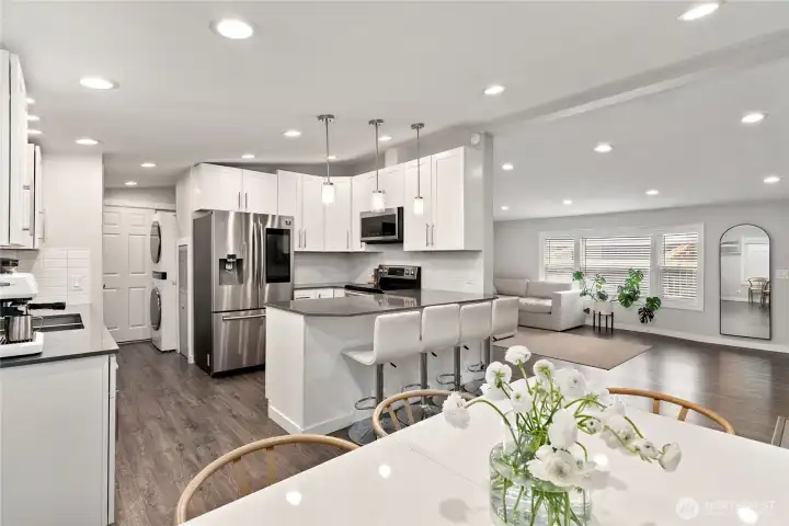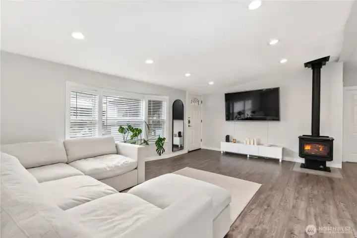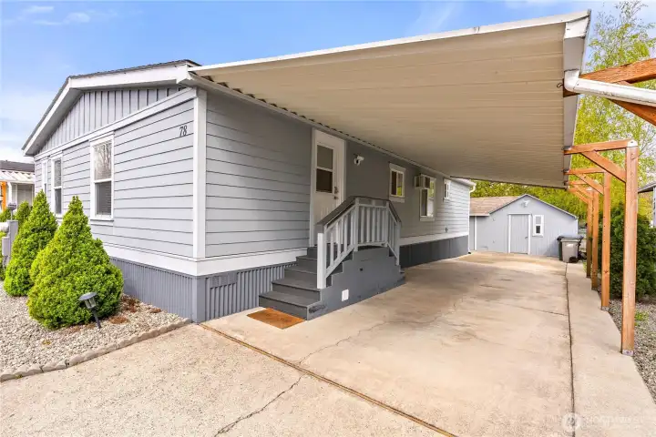 Beautifully renovated home offering modern elegance and effortless living. This stunning residence features a bright open-concept layout filled with natural light, enhanced by a fresh, crisp white interior and thoughtfully curated finishes throughout. The fully updated kitchen is appointed with brand-new appliances and flows seamlessly into the main living space, creating an ideal setting for both everyday living and refined entertaining. A cozy wood-burning fireplace adds warmth and timeless charm. Step outside to a beautifully designed outdoor retreat featuring an expansive patio with stylish seating, perfect for relaxing or hosting gatherings. The spacious backyard is complemented by a deck and a convenient storage shed, offering both functionality and comfort. The property also features exceptional parking options, including access on both sides of the home and a covered area with space for up to four vehicles, an uncommon and valuable convenience. Meticulously maintained inside and out, this home showcases outstanding curb appeal and true move-in-ready quality. Ideally located near shopping, dining, and everyday amenities, it offers a seamless blend of style, comfort, and convenience. A truly exceptional opportunity, this home is a must-see!