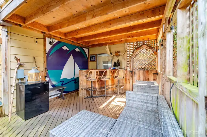 A short, peaceful walk Cottonwood Beach in Birch Bay, this turnkey 4-bed, 2-bath, 2,114 sq ft coastal charmer is ready for its next chapter, with a modern feel while preserving its classic 1928 character. The open floor plan flows around a cozy wood-burning fireplace, with skylights and French doors showcasing the space with natural light. Multiple decks, a private patio, and a custom outdoor bar area make entertaining effortless. Four spacious bedrooms, two full baths, and an open, spacious kitchen means there's room for everyone. Perfect as a primary residence or vacation rental — beach life starts here!