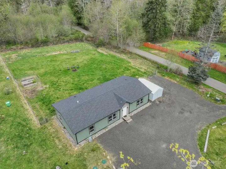 Well maintained 3 bedroom, 2 bath home on 1.49 acres. Bright and inviting layout, open concept living/kitchen/dining. Comfortable bedrooms, lots of storage. Primary bedroom has attached bathroom & large walk-in closet. Ample parking space, RV hookup, cheerful fire pit, fenced yard, perfect space for a large garden or mini farm! Shed and metal storage building convey. Minutes from Hood Canal, easy access to outdoor recreation.