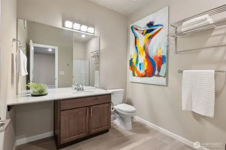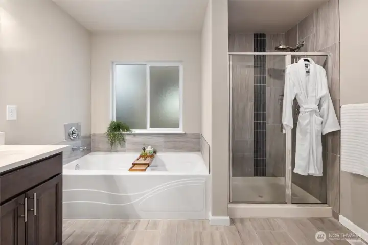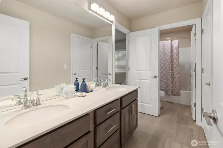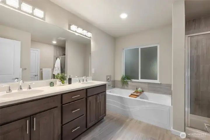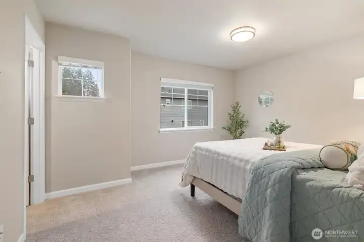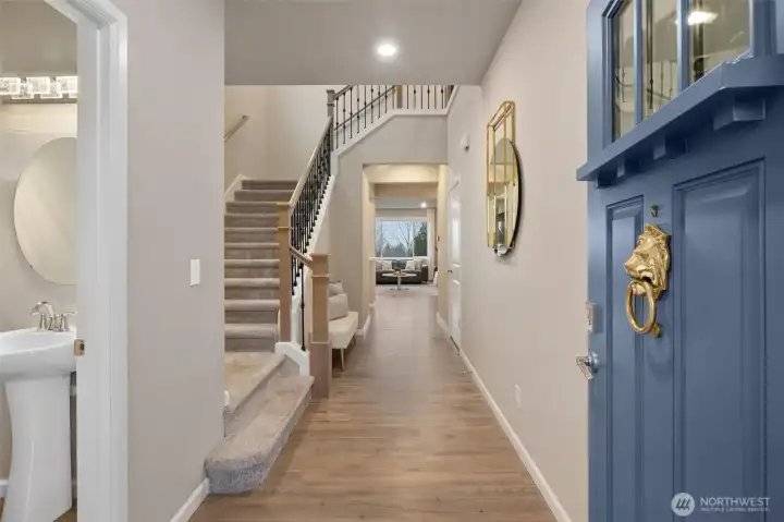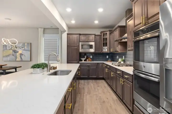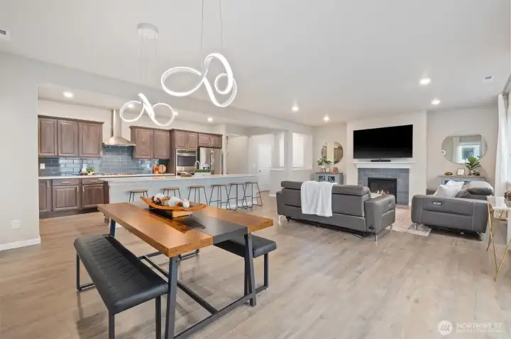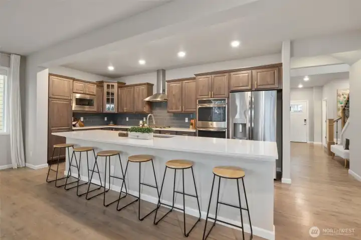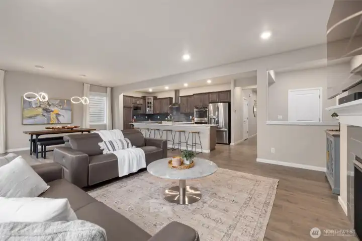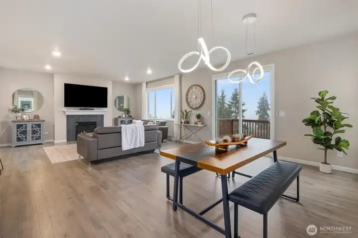 Covered front patio welcomes you to this spectacular 9-foot-ceiling SMART home. From the moment you step inside, the grand entryway & soaring ceilings set the tone, complemented by abundant natural light & stunning territorial & Olympic Mountain views. Just off the entry, the heart of the home awaits, impressive chef’s kitchen designed for both everyday living & entertaining. Featuring a large eating island w/seating for 6, 5-burner gas cooktop, double ovens, soft-close cabinetry w/upgraded hardware & a pantry w/slide-out drawers. Laminate flooring flows seamlessly through the open-concept living & dining areas, anchored by a cozy gas fireplace. Tall slider & oversized windows capture the views & flood the space w/light, while canned LED lighting & smart-home features enhance comfort & efficiency. Main-floor 1/2 bth completes the main level. Upstairs, you’ll find 3 generously sized bedrms, including 2 that share a Jack & Jill bathroom. Spacious owner’s suite offers a peaceful retreat w/luxurious 5-piece ensuite. Upstairs laundry room & furnace closet add everyday convenience. Fully finished basement continues the 9-foot ceilings & provides exceptional flexibility w/a large bonus room. Optional 5th bedroom & a ¾ bath. 5th bedroom currently has one wall unfinished, offering an opportunity for customization. Expansive patio is ideal for entertaining & covered area beneath deck has been roofed creating a private, year-round seating space. Central A/C & Northshore Schools!