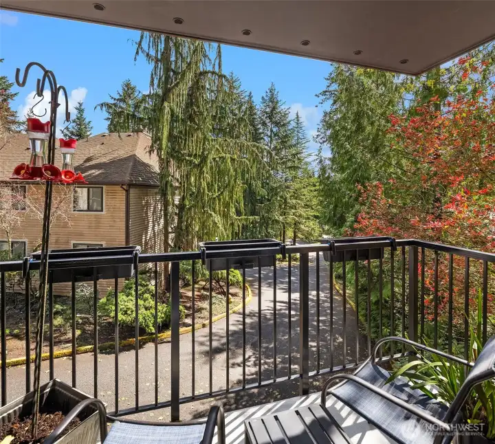 End unit with beautiful and peaceful views of the surrounding woodlands.