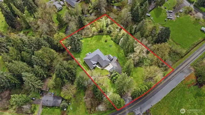 [PRIVATE + EXPANSIVE] Discover the ultimate blend of modern luxury and unbridled freedom in this custom-built sanctuary, perfectly positioned on over 1.5 sprawling acres across two private parcels. This 2,420-square foot single story home is a rare find, offering a life defined by serenity rather than restrictions, with absolutely no HOA, dues, or CCRs to limit your vision. At the heart of the home lies a chef’s dream kitchen, featuring stunning granite countertops, a massive 8-foot social island, and a cozy gas fireplace that sets the perfect mood for evening gatherings. Transition seamlessly to the primary suite, a true spa-inspired retreat boasting a deep soaking tub and a walk-in shower with dual tile heads. A whole-home water softener system services indoor fixtures, adding everyday comfort and convenience. The interior comfort of the high-efficiency heat pump and air conditioning is matched only by the breathtaking outdoor living space. Step out onto a private deck, pre-plumbed for your gas BBQ, and take in the peaceful sights and sounds of Little Pilchuck Creek. Designed for the hobbyist and adventurer alike, the property features a massive three-car garage, dedicated RV and boat parking, and a unique access door under the home providing incredible bonus storage or workshop potential. This isn't just a house; it’s a private creekfront estate offering the rare Northwest luxury of space, style, and total independence.