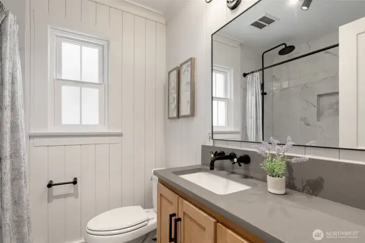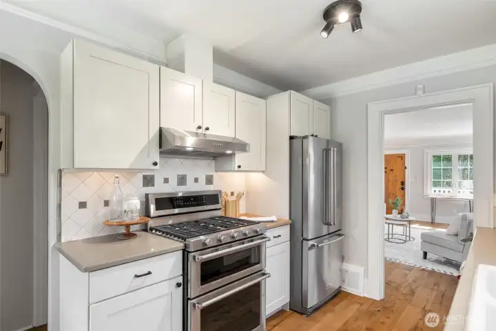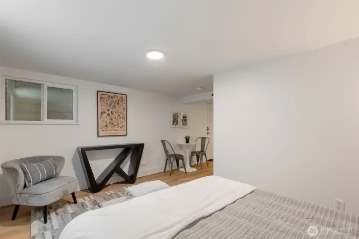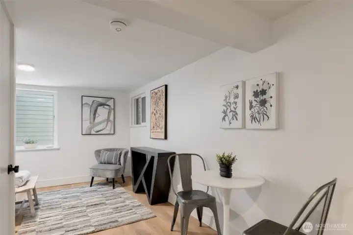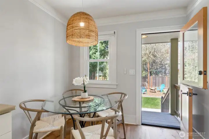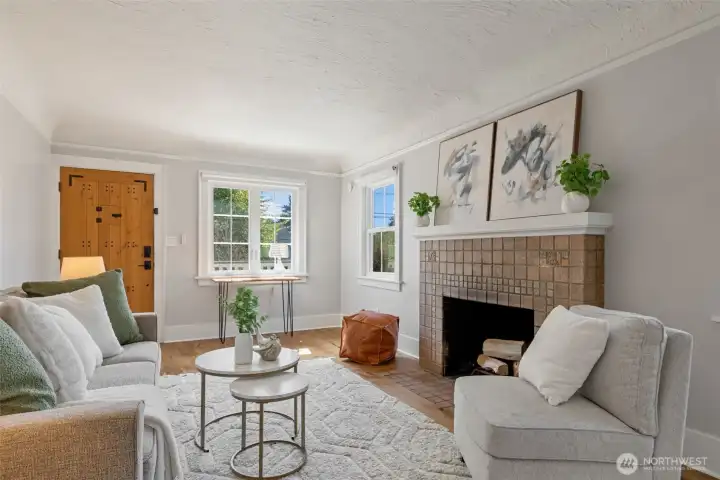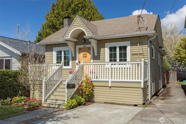 Classic Phinney Ridge charm meets modern flexibility in this thoughtfully updated 1926 Craftsman. The welcoming front porch leads into a light-filled living room with coved ceilings, anchored by an original hand-cast tile fireplace. Two spacious bedrooms and an updated full bath. Kitchen, with stainless appliances, a six-burner gas range, and dining space, features a Dutch door that opens to a sun-drenched backyard, ideal for summer entertaining and late-night campfires. The versatile basement functions as an excellent office, media room, or guest suite, with laundry and a half bath. And here's where it gets interesting: a potential rental studio or MIL / ADU with its own exterior entrance, full kitchen, three-quarter bath, and washer/dryer. House-hack homeownership, host extended guests, or just turn on rental income whenever you want, like during the World Cup this summer! Fresh paint and carpet, newer windows and flooring, and a brand-new high-efficiency furnace. Rare off-street parking space. A short walk to all that Phinney Ridge and Greenwood have to offer: some of the best shops, bars, and restaurants in Seattle. Easy access to transportation, South Lake Union, and downtown. Charming, turnkey, and full of possibilities. Do not miss this unique PhinneyWood gem!