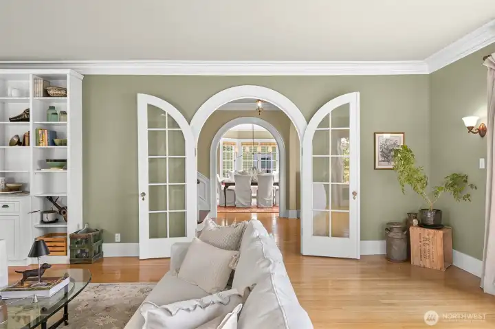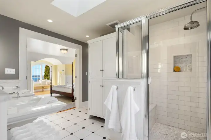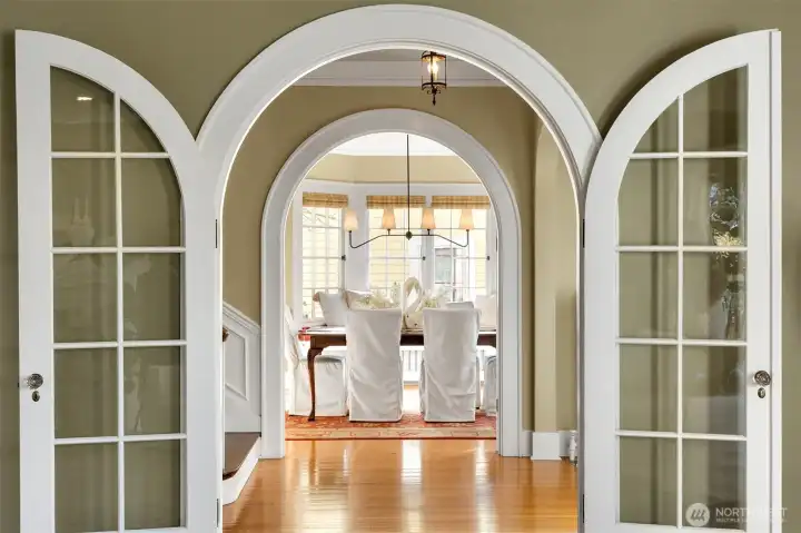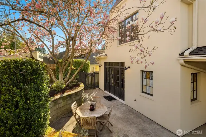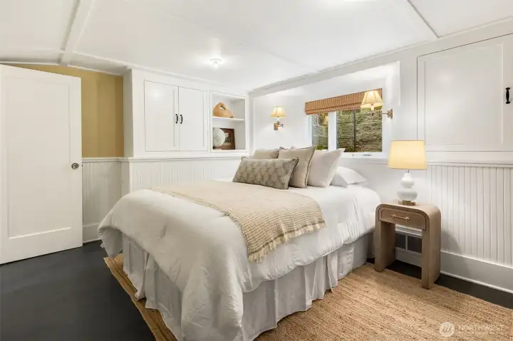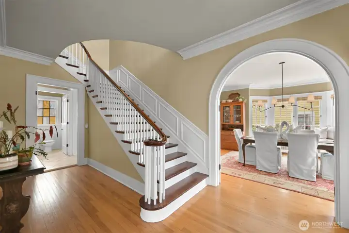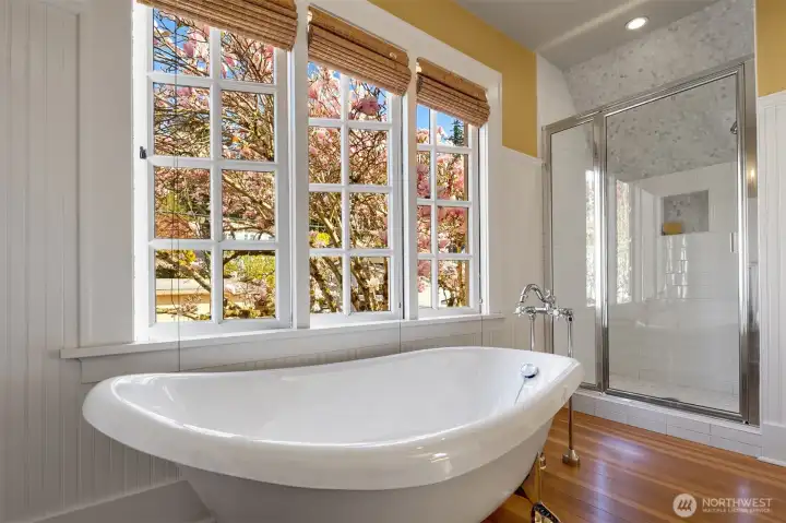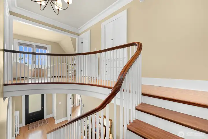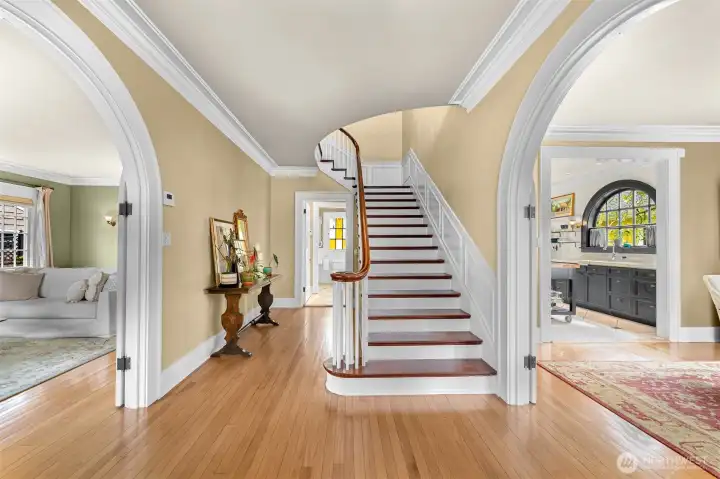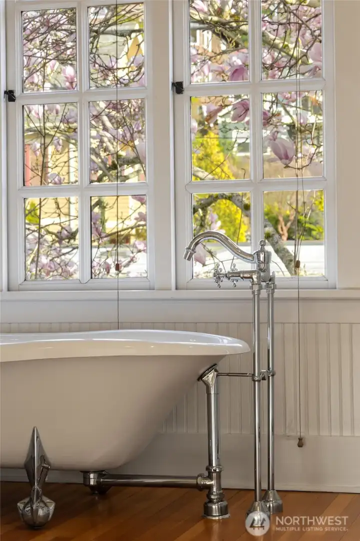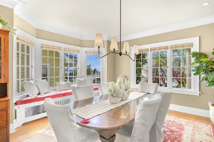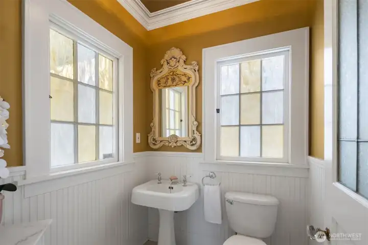 Classically elegant South Hill home with preserved historic character and a refined European influence. Original details and warm, endearing spaces make it easy to fall in love the moment you walk in. Many rooms capture beautiful bay views, while a spacious balcony offers sweeping 180-degree views out to the islands—inviting you to slow down and take it all in. Thoughtfully updated kitchen and baths reflect a classic, timeless style. The welcoming floor plan is made for both cozy holiday gatherings and summer garden parties, with French doors from the kitchen and living room opening seamlessly to the patio and yard. Upstairs, two beautifully appointed en-suite bedrooms—including a gracious primary suite with a rare, oversized walk-in closet—offer comfort and privacy. A guest suite on the lower level is complemented by a built-in office and media room. You’ll also find an impressive laundry room with generous storage and a charming farmhouse sink. Two-car detached garage off the alley, plus ample parking in the driveway out front. Sprinkler system in the expertly designed yard which includes mature landscaping, fruit trees and impressive hardscaping. Wonderfully maintained home includes cozy radiant heat, restored siding, and a brand new roof. Set on one of South Hill’s most sought-after streets, with flat sidewalks and just moments to Boulevard Park, Fairhaven, and downtown. Worth noting that the view is legally protected on this home. This one is truly a rare gem!