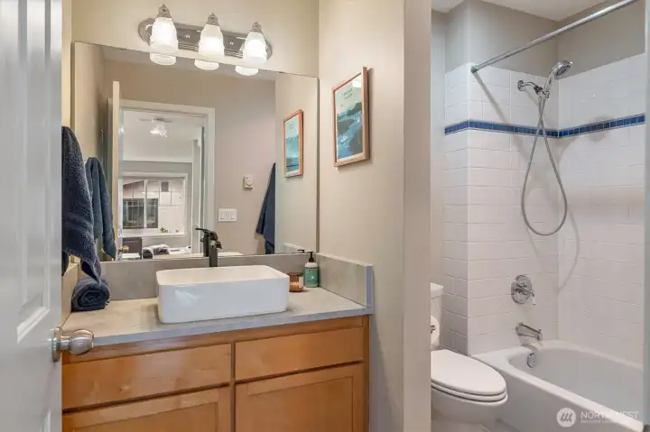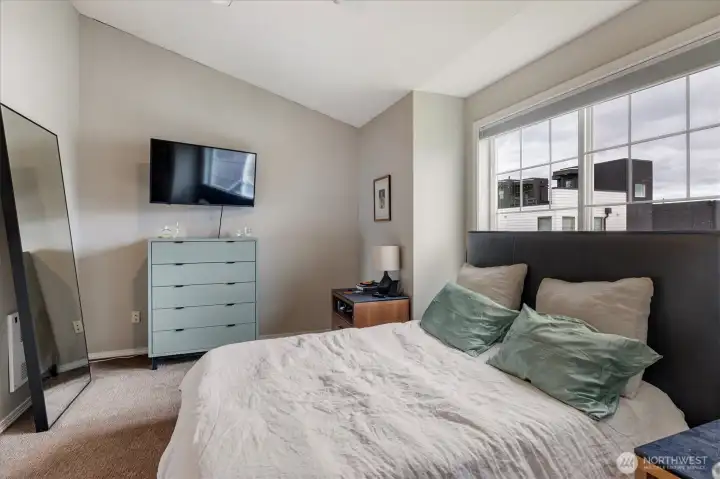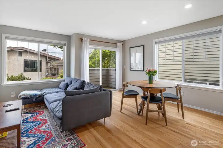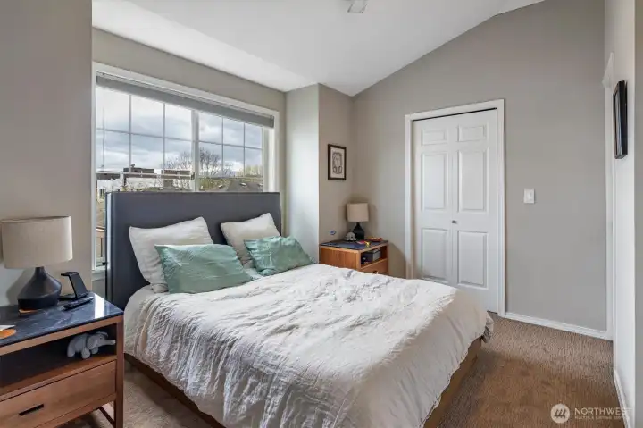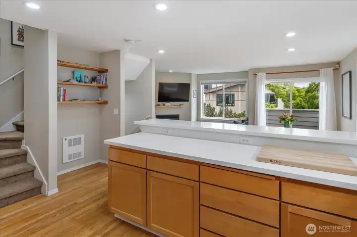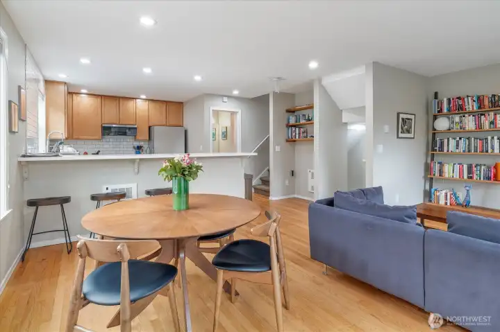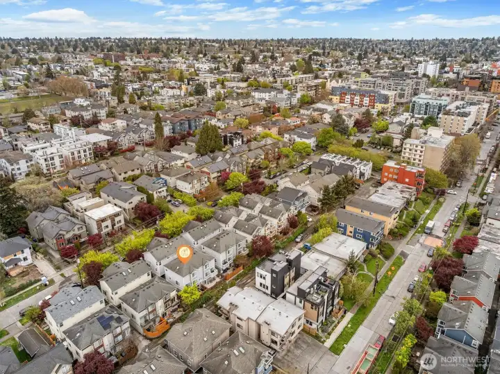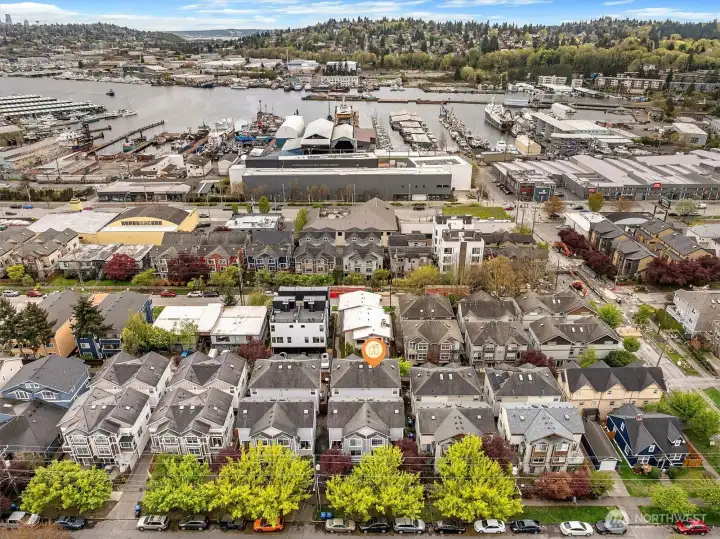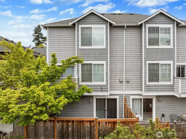 Welcome to this bright, thoughtfully designed 3-bedroom, 2-bath Ballard townhome offering 1,320 square feet of stylish living just blocks from the Ballard Locks, Golden Gardens, and the vibrant shops and restaurants that make this neighborhood one of Seattle's most sought-after. The great room layout features beautiful hardwood floors, a spacious living room with gas fireplace, and seamless access to a private deck — perfect for relaxing or entertaining. The kitchen is a standout with white quartz countertops, stainless steel appliances, a Wolf gas range, and a generous breakfast bar. Upstairs, two large bedrooms with vaulted ceilings share a Jack & Jill bath, with the convenience of an in-unit laundry room. The entry level offers a versatile third bedroom or home office with a slider opening to a fully fenced backyard — an urban oasis ideal for al fresco dining and gardening. A garage provides parking or additional storage. Walk to the Ballard Farmers Market on Sundays, stroll the Locks on a summer evening, or hit the sand at Golden Gardens — this is Ballard living at its best.