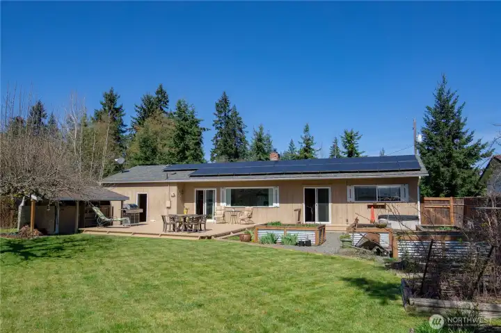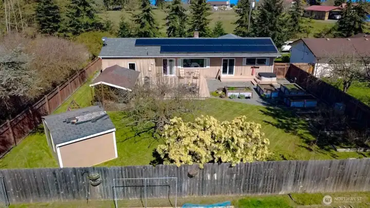 Designed for those who enjoy an outdoor lifestyle and the convenience of a quiet rural city life, this nearly 1500 sqft rambler in the middle of Port Angeles will make quite an impression. Located down a private road across from an open field in a peaceful, friendly neighborhood, the new flooring, fresh paint, and supplemental solar power only begin to showcase some truly valuable features – from the double Primary bedroom to the cozy central fireplace and South facing picture window, step out onto the 500 sqft deck and bask in the sun while enjoying the stunning views of Hurricane Ridge and the Olympic Mountain range. Continue to explore the backyard and find two solid outbuildings for dedicated hobbyists, aspiring gardeners, or convenient storage, all well-established with plenty of room to grow. Soak in the hot tub under the stars, then head back inside to enjoy the spacious recreational room for movie night, games, or a productive work area. With the PA High School just a couple blocks away and the Public Library down the road, you can also easily explore Peabody Creek, head downtown to dining and entertainment on the Waterfront, or take advantage of the National Park right around the corner. Set up a tour with your agent today, and come see what life can be like on the incomparable Olympic Peninsula.