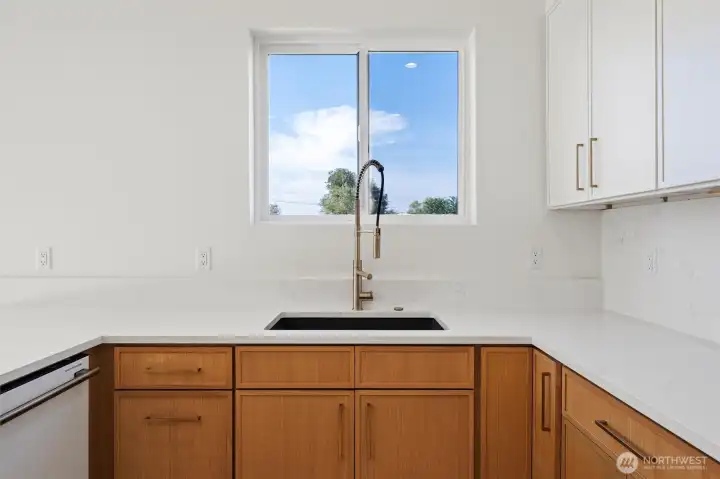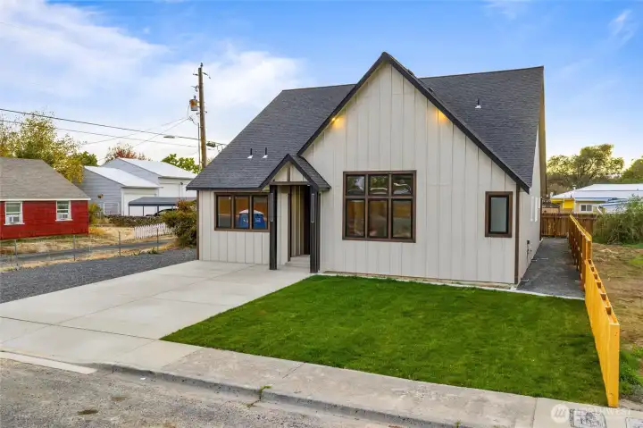 A stunning 3-bedroom, 2-bath custom home by PDK Construction with over 1,700 sq. ft. of well-designed living space. The gourmet kitchen features quartz countertops, a matching backsplash, and sleek white-and-gold appliances. Enjoy LVP flooring, cathedral ceilings, and a convenient stackable washer/dryer. The primary suite stands out with wall slats, designer sconces, and a spa-inspired bath featuring a soaking tub, tiled shower with cobblestone flooring, rainfall shower head, lighted mirror, and walk-in closet. Outside, enjoy a covered patio, landscaped yard, RV parking, and a 2-car garage—just minutes from Soap Lake, shopping, and dining.