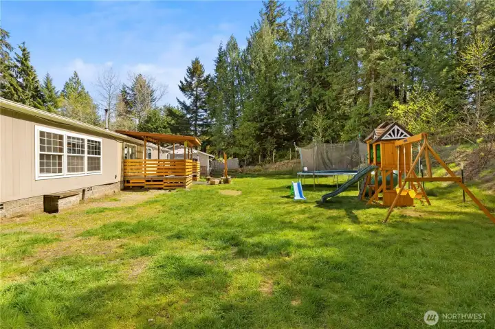 Welcome to this beautifully updated 3 bed, 2 bath rambler, offering the perfect blend of comfort and style on a sprawling 1.25 acre lot. This home has been thoughtfully renovated with modern touches throughout, including a brand-new kitchen with all new appliances, new LVP flooring, and a stunning, fully remodeled bathroom with a standalone tub – perfect for unwinding after a long day. Enjoy the bright and airy living spaces, including a number of new windows allowing for plenty of natural light. The spacious primary suite features its own private bathroom and walk-in closet. The inviting den provides extra flexibility for home office space, an additional bedroom or a cozy retreat. Step outside to the expansive lot, perfect for outdoor activities, gardening, or simply enjoying the privacy. The front door opens to a large covered front deck, ideal for relaxing or entertaining. Other highlights include a pellet stove for cozy winter nights and a convenient mudroom area. 2 car detached garage & shed provide even more storage. New furnace in 2025 & new back deck. This home is move-in ready with all appliances staying, offering both comfort and functionality in a peaceful setting. Don’t miss out on this incredible opportunity in Port Orchard!