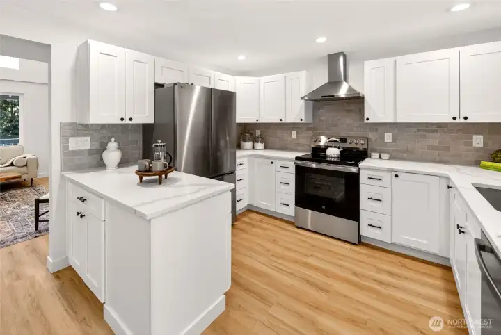 Gorgeous kitchen with dining area.