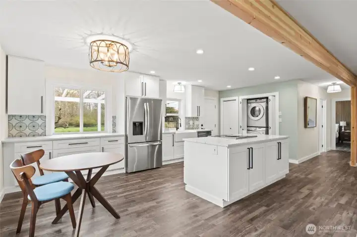 A walk in pantry and a full size, brand-new stackable washer and dryer!