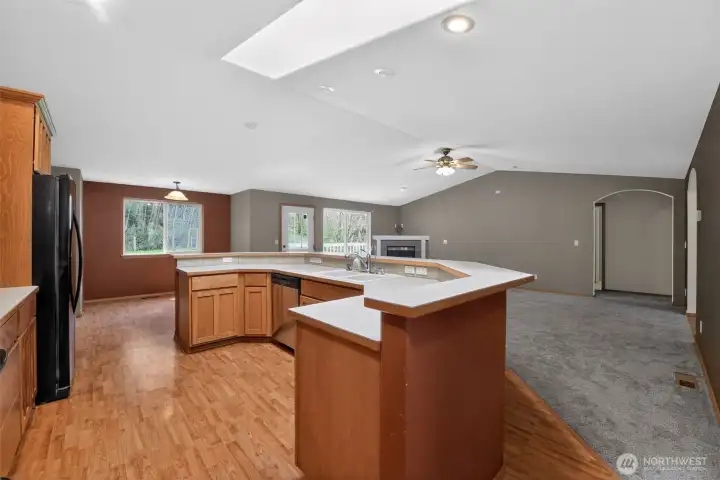 Welcome to this custom-built home nestled on 3 private acres on sought-after Michigan Hill in Rochester. This 3-bedroom, 2-bath residence offers comfort, functionality, and peaceful surroundings. A spacious entry welcomes you into an open-concept layout featuring vaulted ceilings, skylights, and a dedicated dining area that creates a bright and inviting living space.The well-appointed kitchen showcases beautiful cabinetry, a large bar, eating area, and a generous walk-in pantry, seamlessly flowing into the living room with a cozy gas fireplace—perfect for everyday living and entertaining.The primary suite features a walk-in closet and private full bath retreat, while two additional spacious bedrooms are separated by a second full bathroom for added privacy.Additional highlights include a roof-mounted solar system, generator hookup, large utility room, paved driveway, and ample parking space. Enjoy the tranquility of country living while remaining conveniently located near local amenities.
