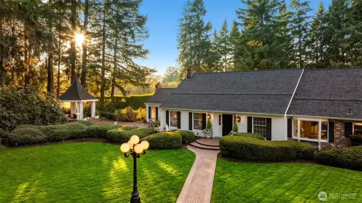 Nestled on 8 private, secluded acres, “Whispering Oaks” is a rare legacy estate offered for the first time since its 1977 construction. Zoned R1-5 and R1-7, this property presents a prime opportunity for residential development, land investment, subdivision potential, or multigenerational living. The 4,822 sq ft main residence features 4 bedrooms, 3.5 bathrooms, and 4 fireplaces, blending timeless architecture with expansive living spaces. A dedicated executive office/study, multiple gathering areas, and custom built-ins create flexibility for remote work, home business, or luxury living. A fully equipped ADU (Accessory Dwelling Unit) includes a 1-car garage, 1 bedroom, 1 bathroom, and a large office—ideal for guest quarters, rental income, Airbnb, or extended living. Outdoor infrastructure is unmatched, with covered parking for 7 vehicles, a detached RV garage/shop, and multiple outbuildings suited for storage, workshop use, hobby farming, or equipment. A powered playhouse/studio with wood floors overlooks the professionally landscaped grounds. The gated entrance and circular driveway provide privacy and estate presence, while the location offers convenient access to shopping, dining, local farms, and major commuter routes/freeways. A unique opportunity to own acreage with development upside, income potential, and lifestyle flexibility in a highly desirable area.