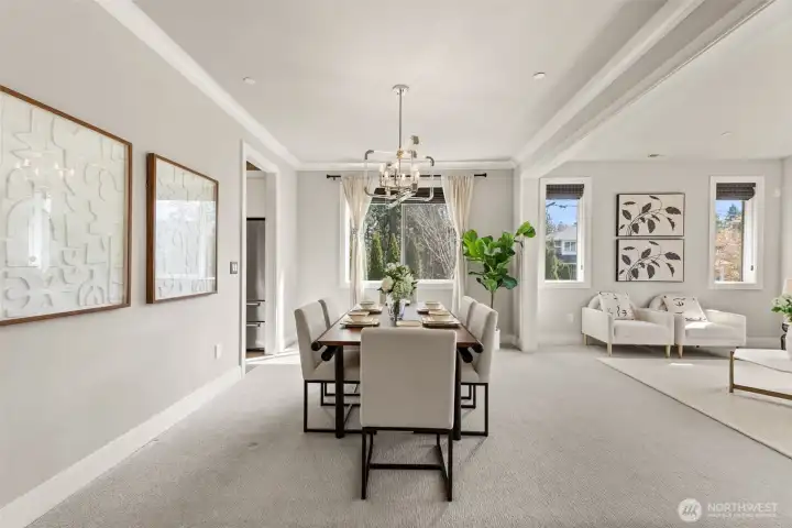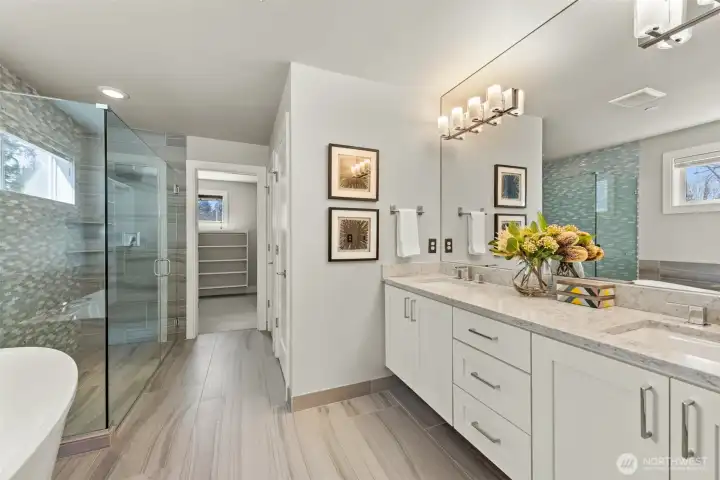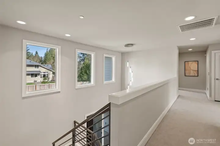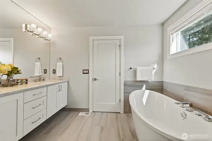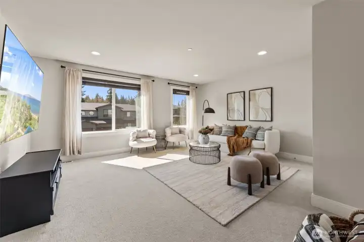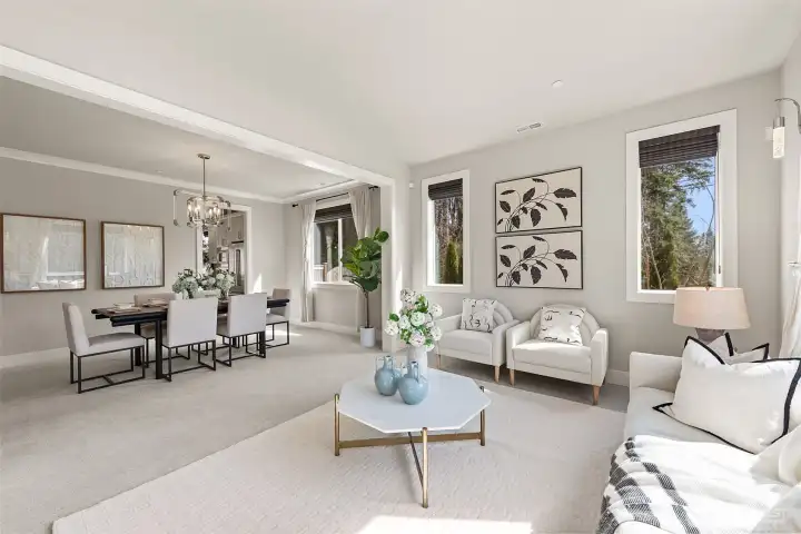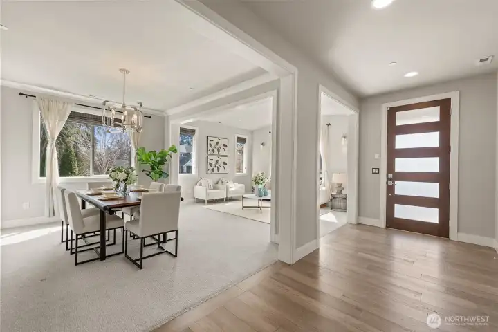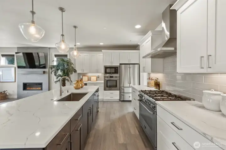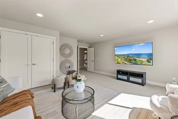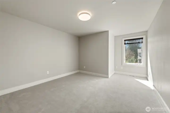 2019 built NW Contemporary on a quiet, south facing Bothell culdesac with year round natural light. Northshore feeders Shelton View Elem, Canyon Park Middle, Bothell HS NO HOAWide-plank hardwoods span the main level. Kitchen: slab quartz, full-height tile backsplash, walk-in pantry, Bertazzonistainless suite with dual ovens — gas range plus electric wall oven. Vaulted great room with gas fireplace opens tocovered patio via French doors. Main floor bedroom with adjacent 3/4 bath (walkin shower) ideal for in laws,guests, or home office.Upstairs: vaulted primary with 5-piece bath (freestanding tub, walk-in shower, quartz, walk-in closet), three bedrooms+ bonus/media room.Outdoors: covered patio + custom paver patio, level fully fenced yard with territorial views, full-lot irrigation, new sod.Systems: central A/C (American Standard, 2019), 90%+ furnace, tankless, Tesla Level 2 EV charger, smarthome wired,SimpliSafe + hardwired Lorex 4camera security.Commute: 5 min to I405 or I5 direct access to Seattle, Bellevue, Redmond, and Kirkland tech hubs (great for dual commute households). Canyon Park tech corridor 8 min; HMart and 99 Ranch within 10.Conveys: wall-mounted 77" + 66" LG OLEDs, premium wood blinds throughout, Bertazzoni appliance