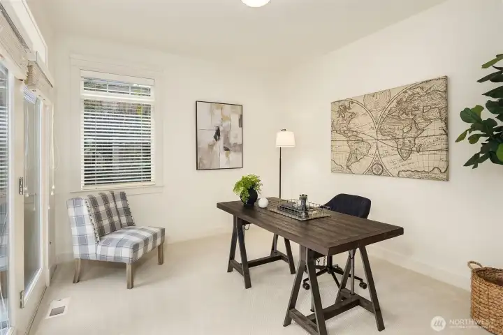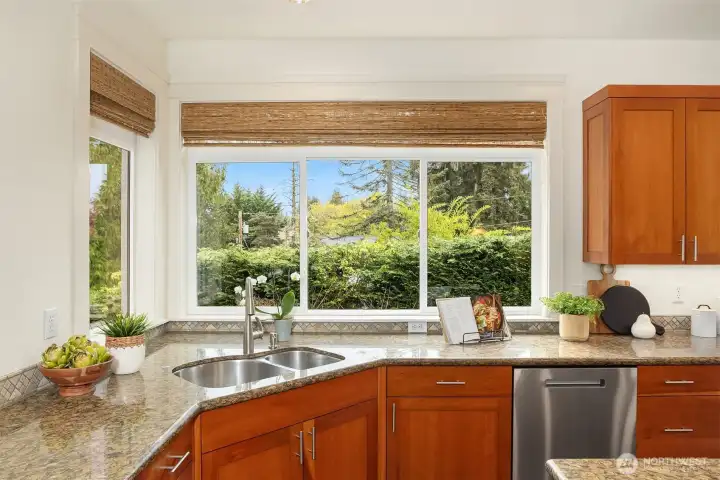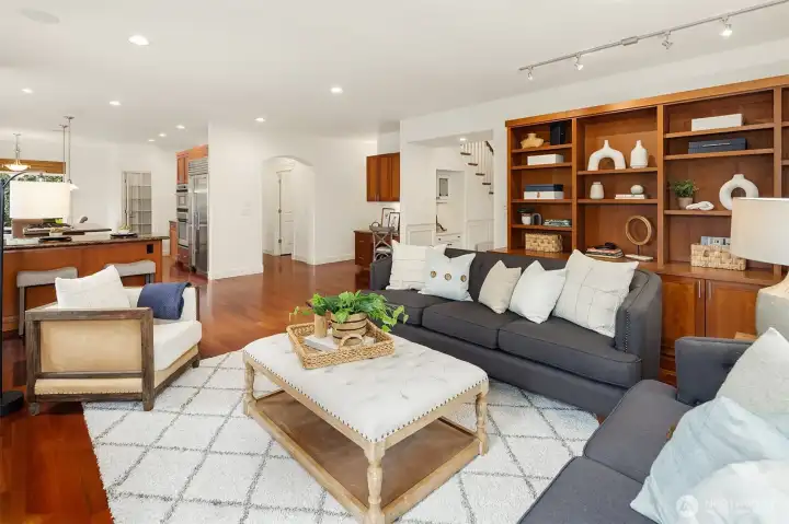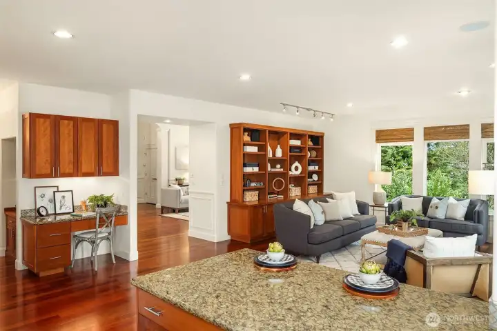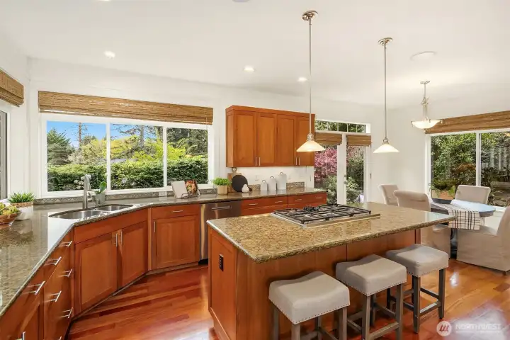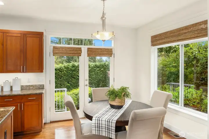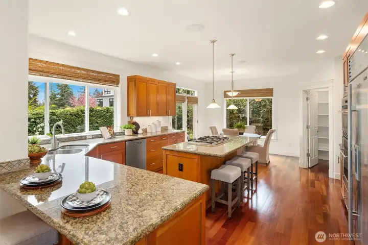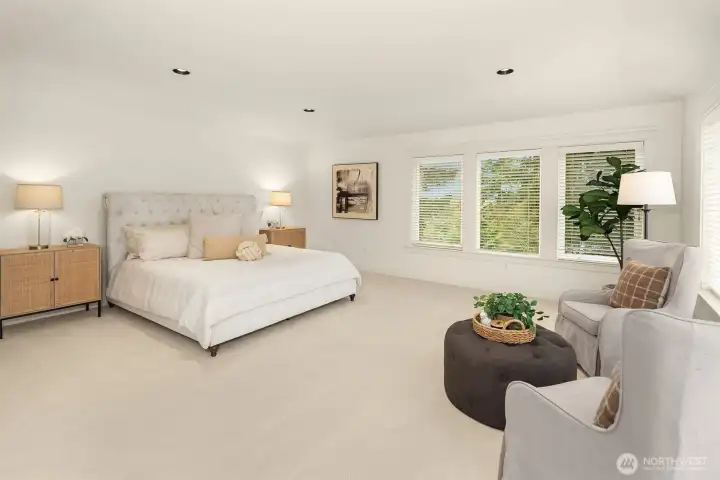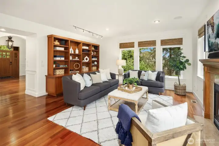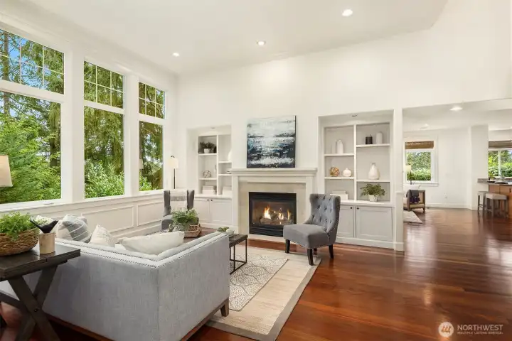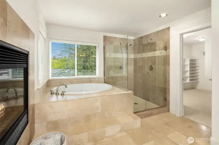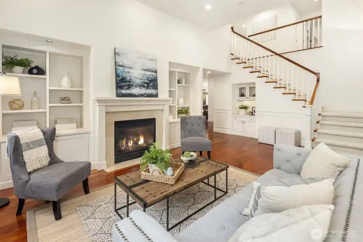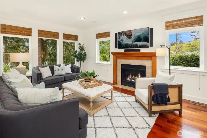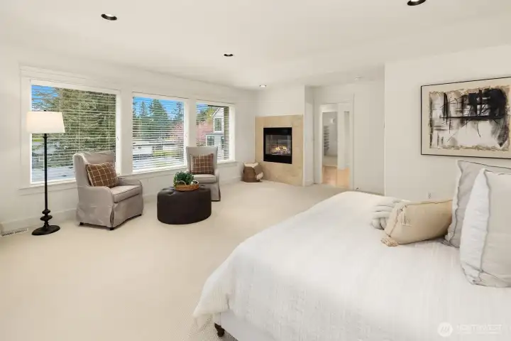 Nestled in a prime location with effortless access to both Bellevue and Seattle, this residence offers the perfect balance of tranquility and convenience in walking distance to Bellevue's Old Main St. Invite guests into the light-filled formal living & dining rooms boasting soaring ceilings. Stunning cabinetry adds a timeless elegance to the home while providing plenty of storage. The inviting kitchen features a charming dining nook that opens directly to the lush garden patio and curated garden. The main floor en-suite office can serve as an ideal guest room or 5th bedroom. Upstairs the primary bedroom sanctuary has a spa inspired bathroom with a dual sided fireplace, large walk-in closet and a sumptuous bathtub. The upstairs also has a large bonus room and three spacious bedrooms. Completing the property is a large kitchen pantry, three car garage, a very large storage room, A/C, landscape lighting and more. Welcome Home!