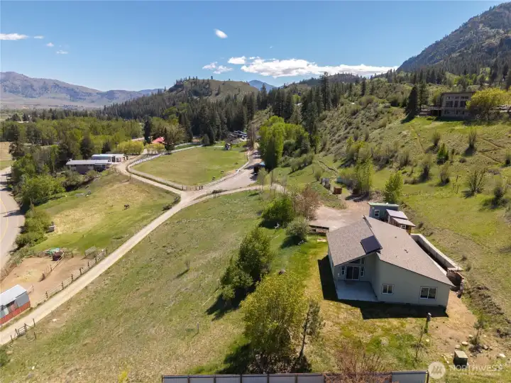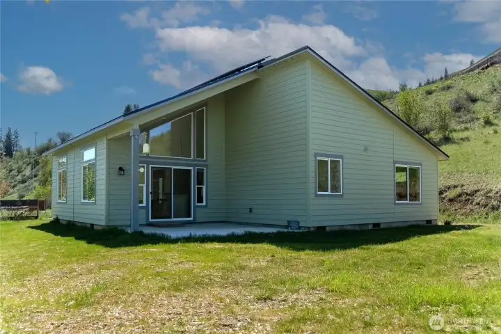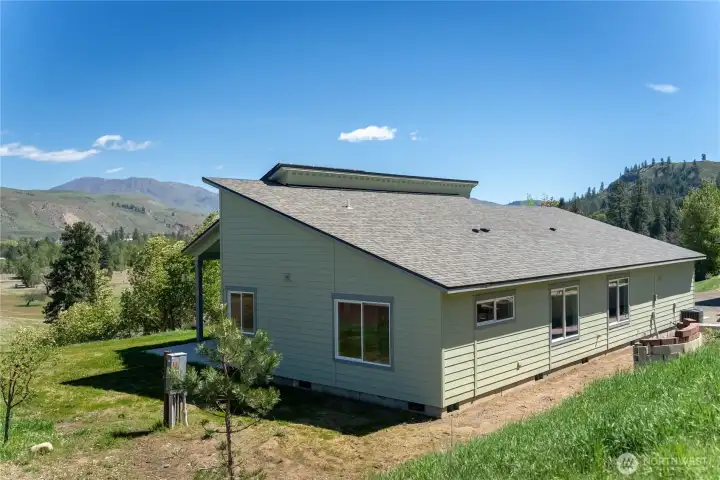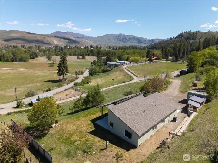 New construction on 2.9 acres just outside of Twisp, offering both privacy and convenience. This thoughtfully designed 3-bedroom, 2-bath home features a spacious great room with soaring vaulted ceilings and large windows that showcase sweeping Methow Valley views. The kitchen is equipped with a generous island and stainless-steel appliances, ideal for everyday living and entertaining. Step outside to enjoy a 246 sq ft patio, perfect for taking in the surrounding landscape. A 440 sq ft attached garage provides ample parking and storage. Energy efficiency is a highlight with solar panels and a heat pump. MVID irrigation keeps the property lush, complemented by a designated garden area. A versatile 12’ x 16’ shed offers additional space for an office or heated storage. This home lies just a mile from the center of Twisp, the valley hub for culture, recreation and artistic offerings in the form of theatre, performance, music, festivals, exhibits, circus arts, and artist studios. World class recreation in the form of cross country skiing, mountain biking, hiking, horse back riding, mountain climbing, to name a few are found in the surrounding National Park and Forests.