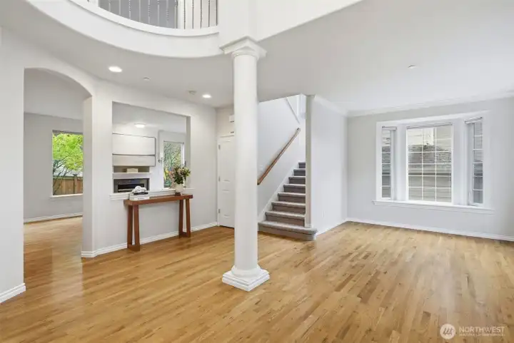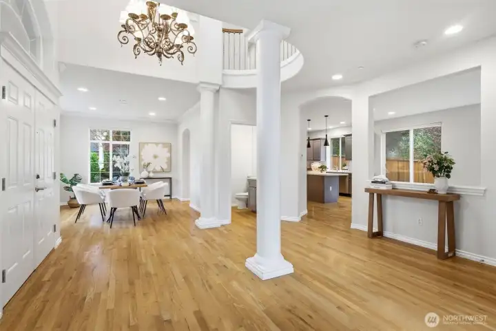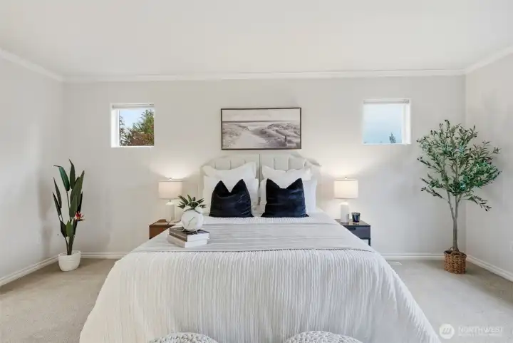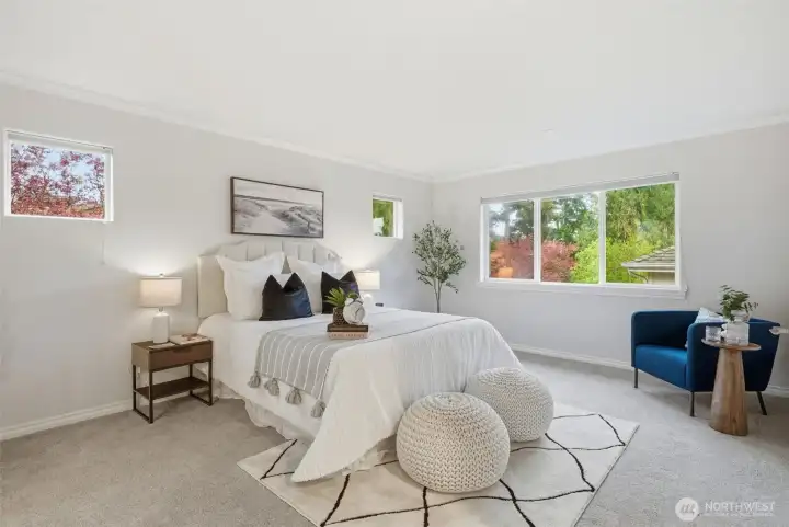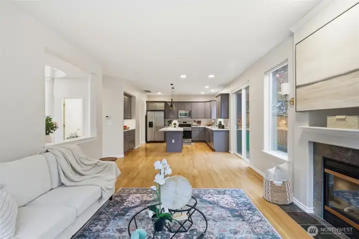 Rare southern Finn Hill opportunity—moments from open meadows, estate homes, and scenic Lake Washington and Mount Rainier viewpoints. Tucked on a quiet cul-de-sac in Finn Hill’s most sought-after southern enclave, this exceptional 4-bedroom, 2.5-bath home offers ~2,570 sq ft of refined, light-filled living. Thoughtfully designed and impeccably maintained, it features warm hardwoods, abundant natural light, and elegant, well-proportioned interiors that balance everyday comfort with elevated style. The open-concept kitchen and family room with fireplace create a seamless space for both relaxed living and effortless entertaining, while expansive windows invite in natural light and frame serene territorial views. Upstairs, the primary suite is a peaceful retreat with spa-like ambiance and a peekaboo Lake Washington view. Additional bedrooms offer flexibility for guests, offices, or evolving lifestyle needs. Low-maintenance grounds provide privacy and ease, complemented by a two-car garage and ample storage. A rare opportunity for expansion awaits below, where a substantial unfinished lower level offers exceptional potential to create additional living space tailored to your vision, unlocking meaningful long-term value. Located in one of Kirkland’s most desirable neighborhoods, this home delivers the feel of nearby estate living in a more efficient, livable footprint—just minutes from parks, beaches, top-rated schools, and Eastside tech hubs.