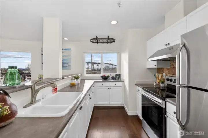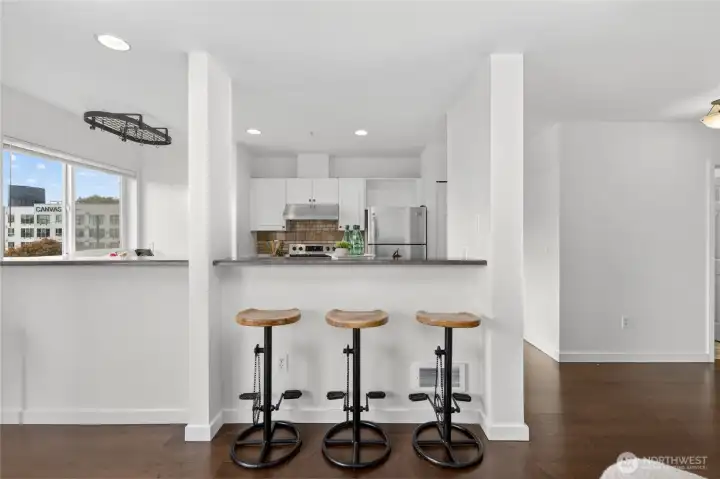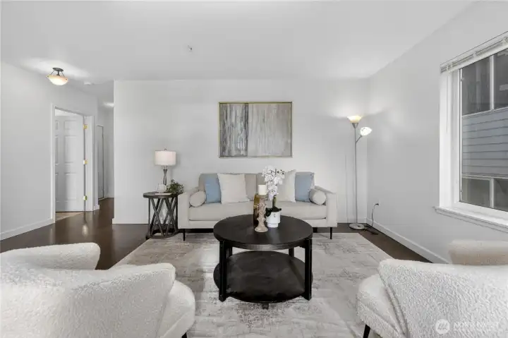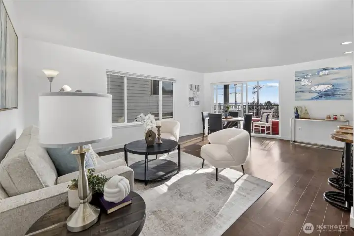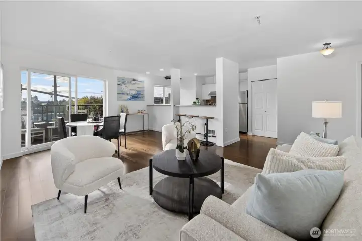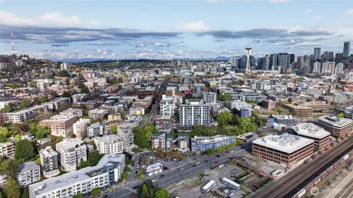 Bright, open-plan 2-bedroom, 2 bath condo in desirable Lower Queen Anne, your perfect Seattle retreat just minutes from downtown. New carpet and paint create a clean, inviting feel, while your private balcony delivers city, Sound, and mountain views. Secured garage parking and private storage unit. Conveniently located just minutes from Climate Pledge Arena and 0.1 miles from Centennial Hills Park, with easy access to open space, trails, and recreation. Quick commute to Amazon & Google, South Lake Union, Seattle Center, Myrtle Edwards waterfront, cafés, restaurants, stores, transit, and all Queen Anne has to offer. Ideal for professionals craving comfort, convenience, and that unbeatable Seattle lifestyle. No Rental cap!