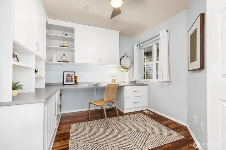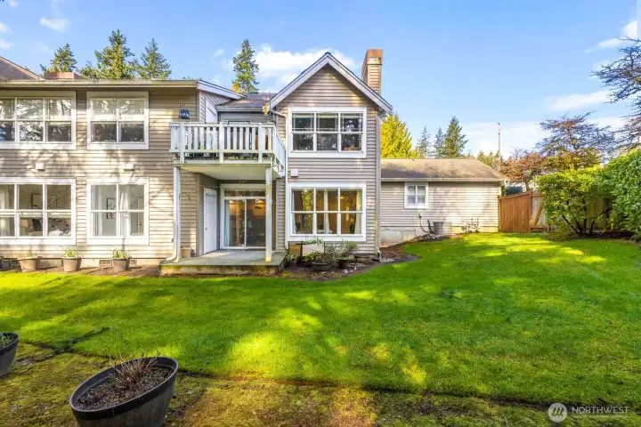 Welcome to Canyon Ridge Condos! This beautifully maintained ground-floor end unit offers the ease of single-level living with added privacy and natural light throughout. The inviting kitchen features a granite breakfast bar, stainless steel appliances, and a separate dining area—perfect for everyday living and entertaining. Cozy up by the gas fireplace in the spacious living room, or step outside to your private patio overlooking a lush, expansive greenbelt for a peaceful retreat. The well-designed layout includes two bedrooms, highlighted by a generous primary suite with an oversized walk-in closet and en-suite bath, plus a versatile office or flex space to fit your needs. Enjoy the convenience of an attached two-car garage with ample storage, along with additional storage off the patio. Stay comfortable year-round with air conditioning, all in a bright and airy home tucked into a quiet, private setting. Ideally located in sought-after Canyon Park with access to award-winning Northshore Schools—this one truly has it all!