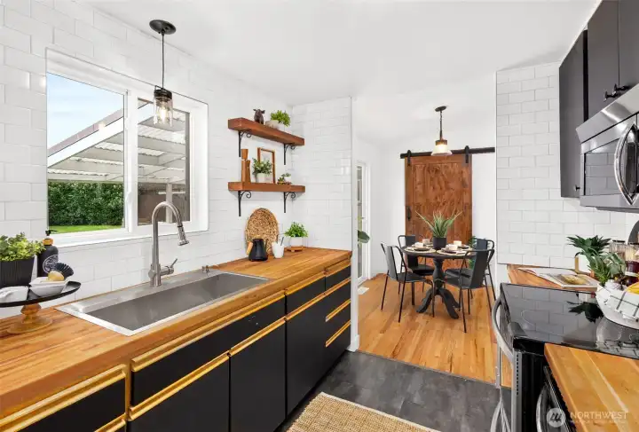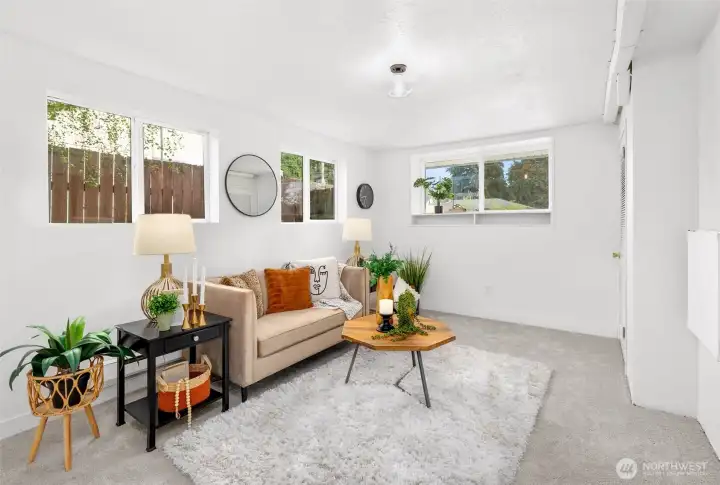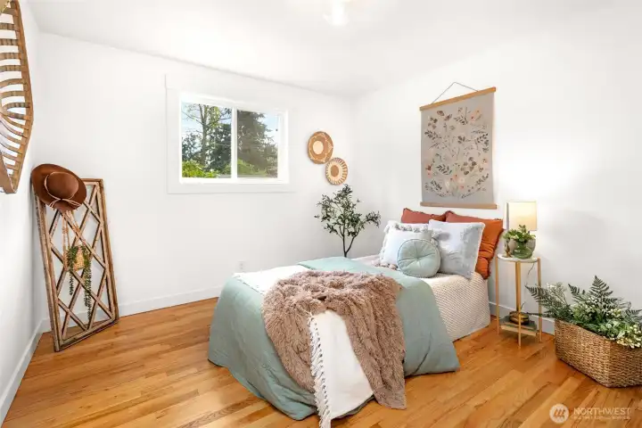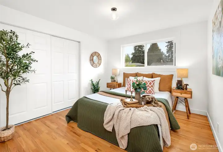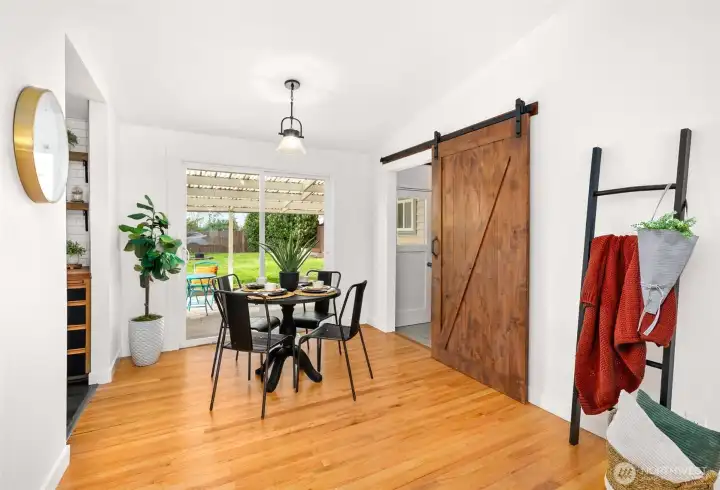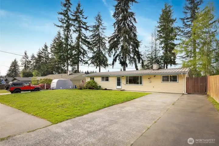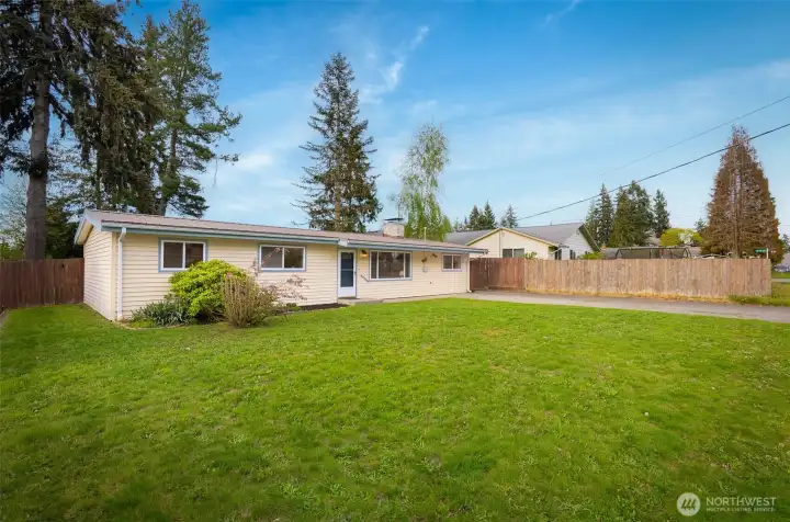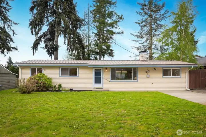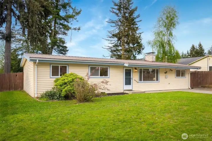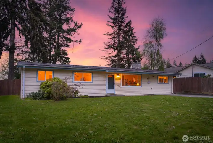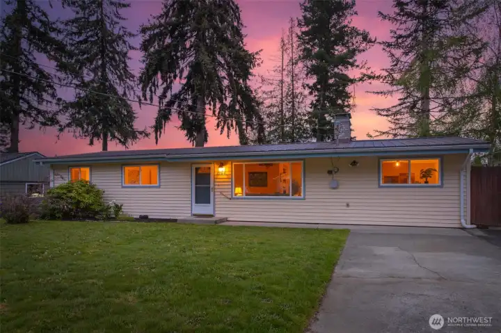 Set in the heart of Silver Lake with effortless access to commuting routes, daily amenities, and local schools, this Everett home perfectly combines comfort, convenience, and easy one-level living. You are welcomed inside by newly refinished hardwood floors and fresh interior paint, creating a bright, refreshed feel throughout. The spacious front living room is filled with natural light from oversized windows and anchored by a cozy fireplace, offering the perfect place to gather or unwind. The kitchen provides ample storage and connects seamlessly to a sunny dining nook, with direct access to the outdoor living space that features a large covered back patio, fully fenced backyard, playset, and storage shed. A versatile bonus room adds flexibility for a home office, media space, or inspiring play area, while the combined laundry and ¾ bath enhances everyday ease. Down the hall, three bedrooms are paired with an updated full bathroom, creating a comfortable and functional layout for a variety of lifestyles.