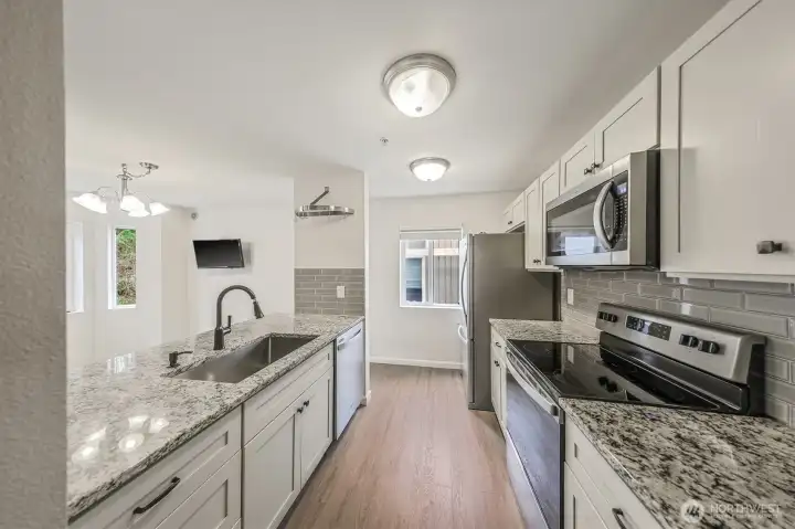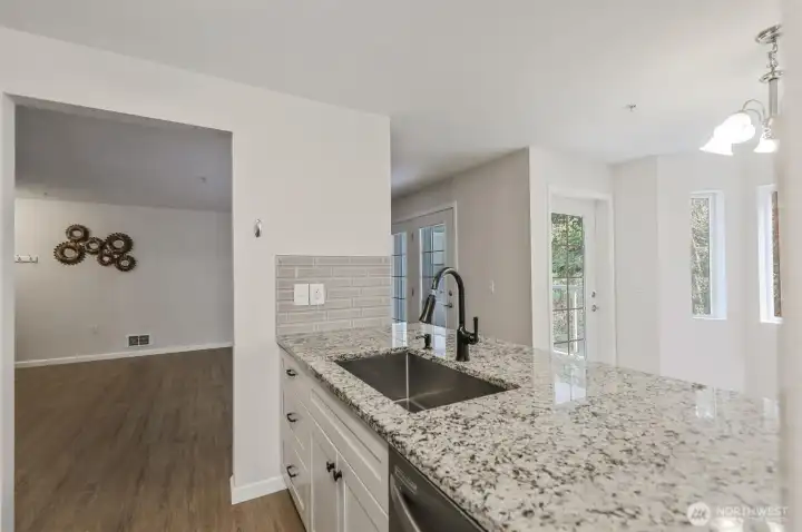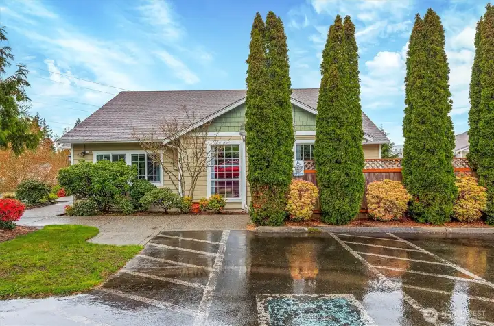 Tucked within the gated community of Shadow Hawk II, this 2 bedroom, 1.75 bath home offers a rare blend of privacy and convenience. Located on the main level with no stairs, it provides easy, comfortable living from the moment you arrive. Inside, fresh paint and updated flooring create a clean, modern feel throughout. The updated kitchen features new cabinets, granite countertops, and stainless steel appliances, with a layout that flows seamlessly into the living area perfect for both everyday living and entertaining. Updated bathrooms. French doors open to a peaceful greenbelt setting, creating a private and serene backdrop that is increasingly hard to find. The home includes designated parking and plenty of guest spaces for added convenience. Residents enjoy a secure gated entry and access to the community clubhouse in this well maintained complex. Quiet and secluded, yet just minutes from The Landing, shopping, dining, and easy highway access, this location offers the best of both worlds. No rental cap.