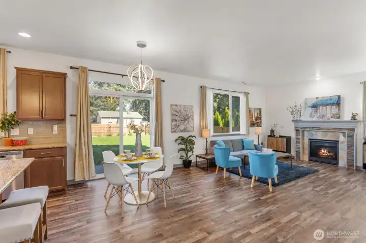 Beautifully maintained and better than new, this 4 bedroom, 2.5 bath home offers generous living space and thoughtful updates throughout. The gourmet kitchen features granite countertops, a large island with undermount sink, and plenty of room for gathering, all open to the inviting family room with a gas fireplace, custom mantel, and slate tile surround. Upgrades include A/C, new LVP flooring, new carpet, updated lighting throughout and fresh interior paint. The spacious primary suite includes a walk-in closet and a luxurious five-piece bath with tile finishes. Enjoy the fully fenced backyard with patio, perfect for relaxing or entertaining, plus a 10x12 outbuilding for extra storage. Additional highlights include a hybrid water heater, hardwired voice smoke detectors, an oversized two-car garage, and convenient RV parking.