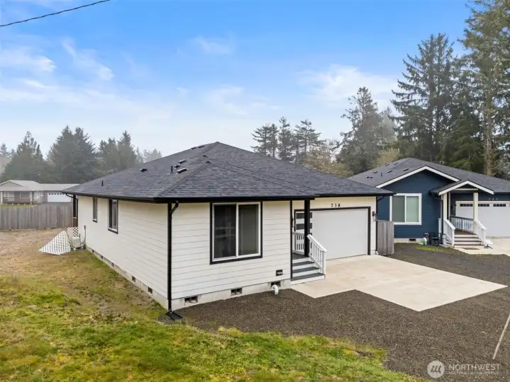 New construction home in the desirable Ocean Shores community. This thoughtfully designed 3-bedroom, 2-bath home offers approximately 1,488 sq ft of modern living space on a 8,552 sq ft lot . Featuring a functional open-concept layout, this home is ideal for full-time living or a coastal retreat. The bright interior showcases contemporary finishes throughout, including a spacious living area, large windows for natural light, and durable flooring. The kitchen is well-appointed with white cabinetry, solid surface countertops, stainless steel appliances, and a large island, flowing seamlessly into the main living space—perfect for everyday living and entertaining. The primary suite includes a private bath and ample closet space, while two additional bedrooms offer flexibility for guests, office, or hobbies. Exterior features a clean white finish for a fresh coastal aesthetic, a covered entry, and a fully usable lot with patio/deck space for outdoor enjoyment. The home also includes a 2-car garage providing ample parking and storage. Located near Ocean Shores amenities, beaches, and outdoor recreation, this property offers easy access to everything the area has to offer. A great opportunity for a primary residence, vacation home, or investment.