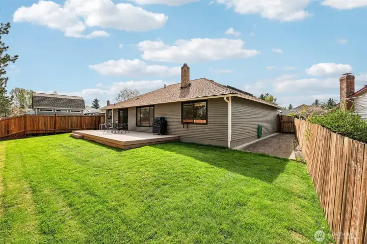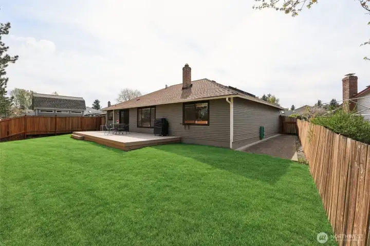 New deck overlooking a fully fenced backyard