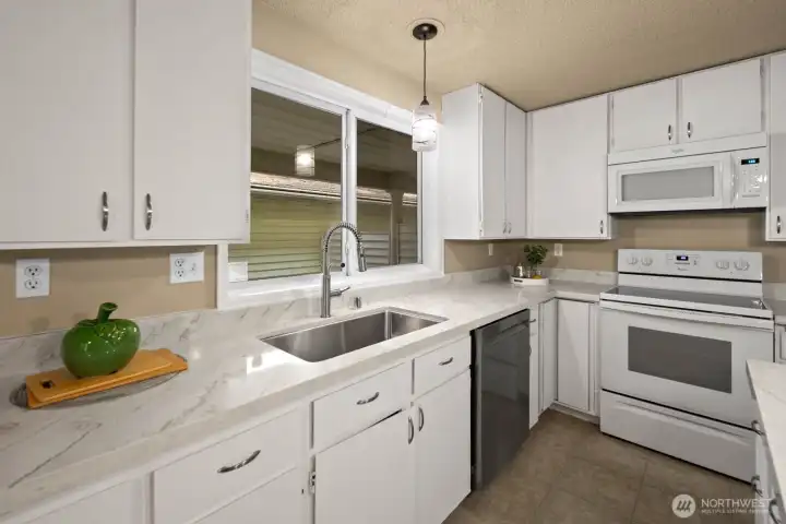 FHA Approved for low down payment options. Welcome to this beautifully updated 2-bedroom, 2-bath townhouse offering comfort, style, and convenience! Situated on a desirable corner lot, this home enjoys extra yard space—perfect for relaxing or entertaining—without the upkeep, as it’s maintained by the HOA. Inside, you’ll find fresh paint, updated lighting, and stunning new quartz countertops that give the home a modern, move-in-ready feel. The thoughtful layout provides both functionality and privacy, and includes the convenience of hook ups for a full-size washer and dryer in-unit. The attached 1-car garage adds even more everyday ease. Enjoy the benefits of a low HOA that covers water, sewer, and garbage—helping keep monthly costs manageable. Ideally located close to shopping, dining, and commuter routes, this home is a fantastic opportunity for easy, low-maintenance living!