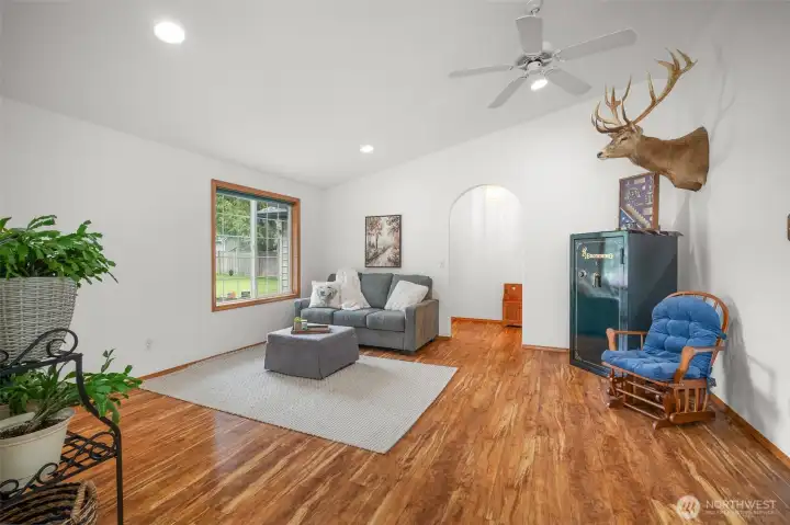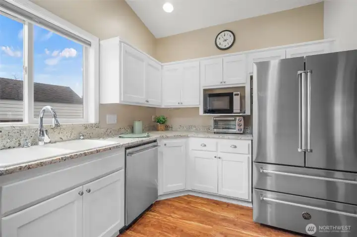 Manicured landscaping welcomes you home with great curb appeal and a well-kept feel.